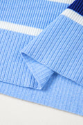 Sale Sky Blue Stripe Colorblock Quarter Zip Collar Sweater Vest
