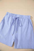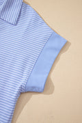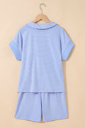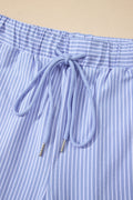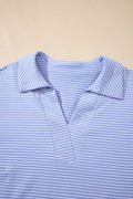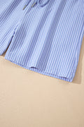 Sale Sky Blue Stripe Dolman Sleeve Polo Shirt and Drawstring Shorts Set