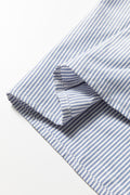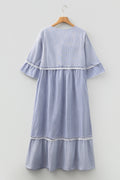 Sky Blue Stripe Patchwork Crossed Lace Detail Bracelet Sleeve Maxi Dress