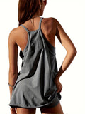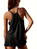 Sleeveless V-Neck Spaghetti Strap Mini Sundress with Built-In Shorts & Side Pockets