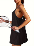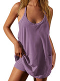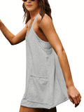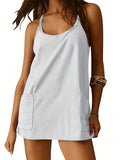 Sale Sleeveless V-Neck Spaghetti Strap Mini Sundress with Built-In Shorts & Side Pockets