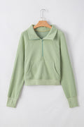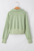 Sale Smoke Green Fleece Lined Zip Up Stand Collar Thumbhole Sleeve Sweatshirt