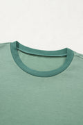 Sale Jungle Green Textured Knit Exposed Stitching T-shirt