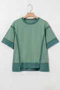 Sale Smoke Green Half Sleeve Raw Seam High Low Side Split Top