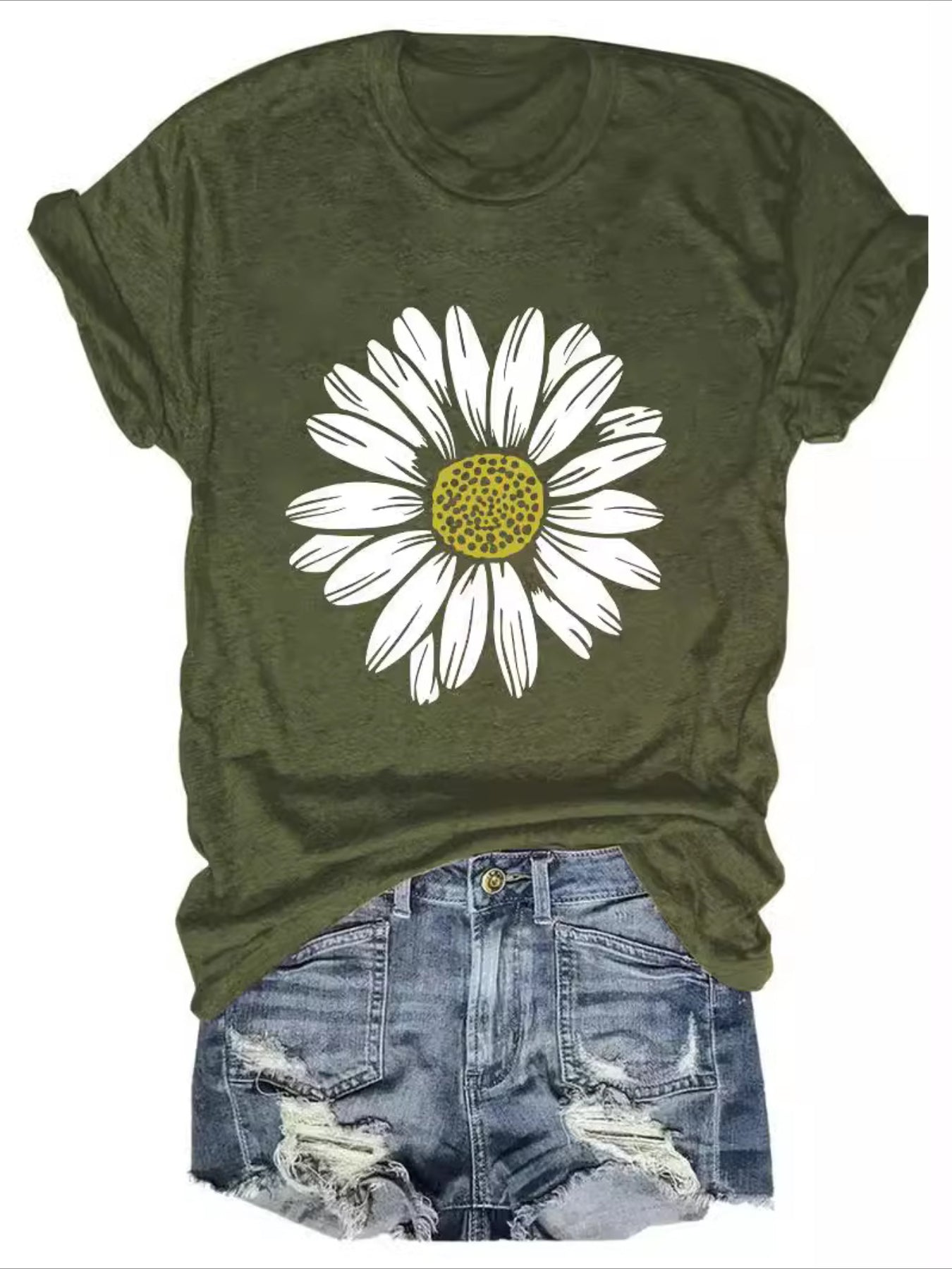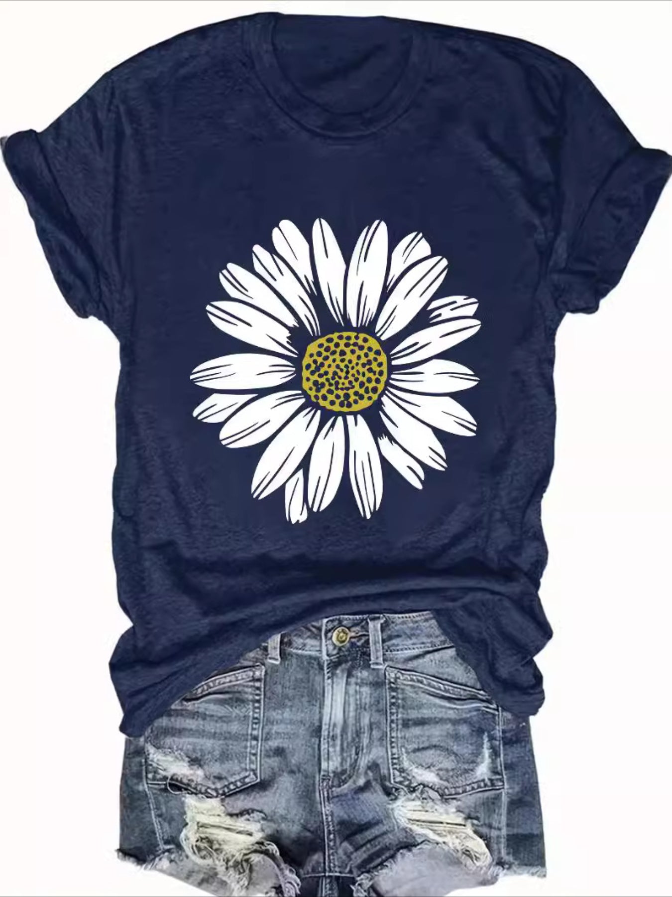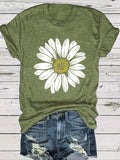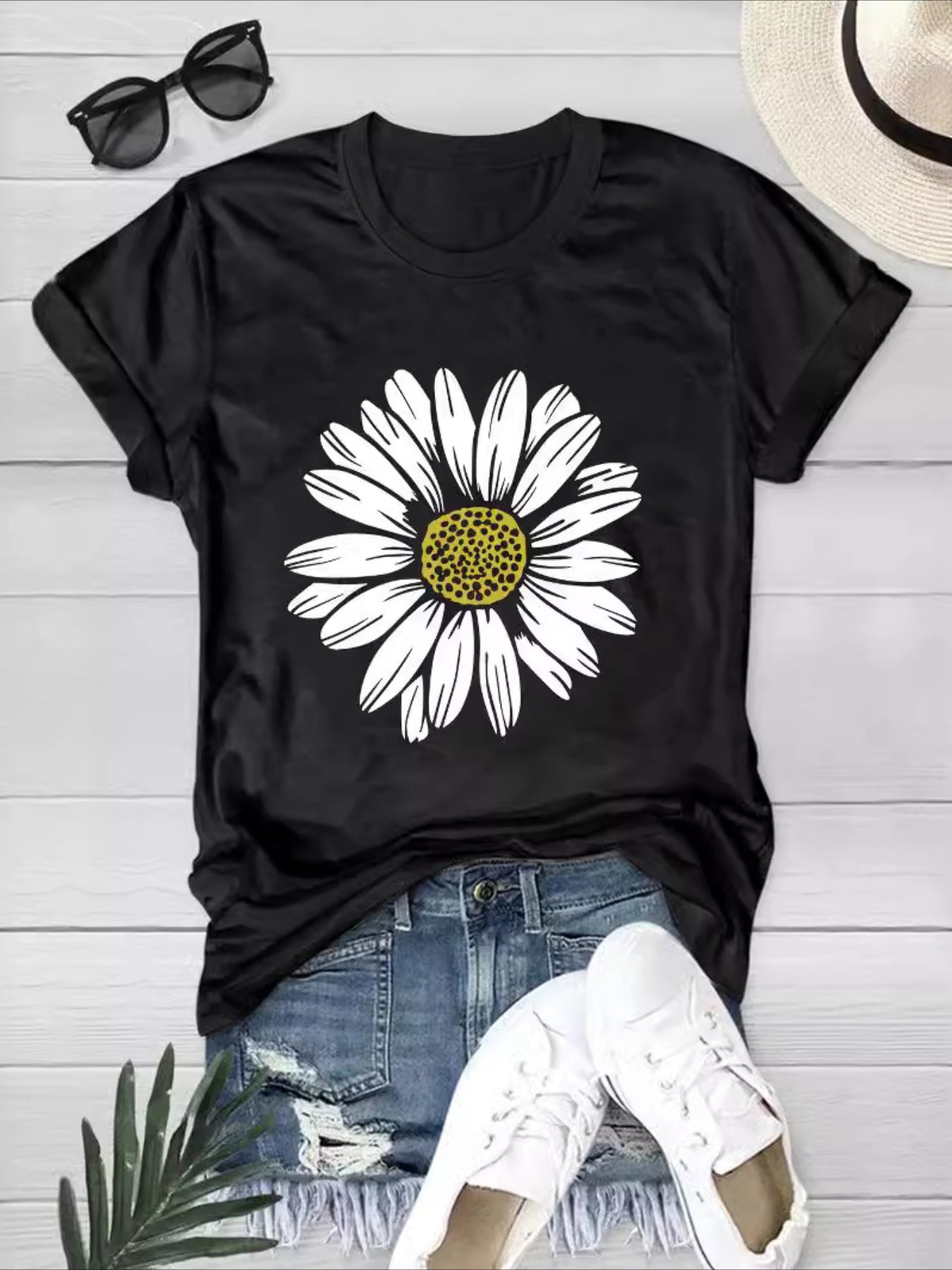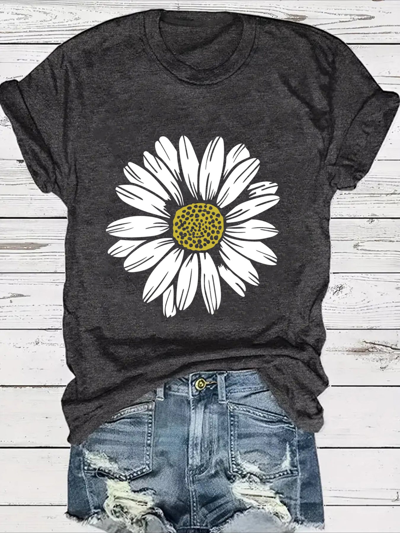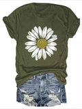 Daisy Flower Print Crew Neck Short Sleeve T-Shirt