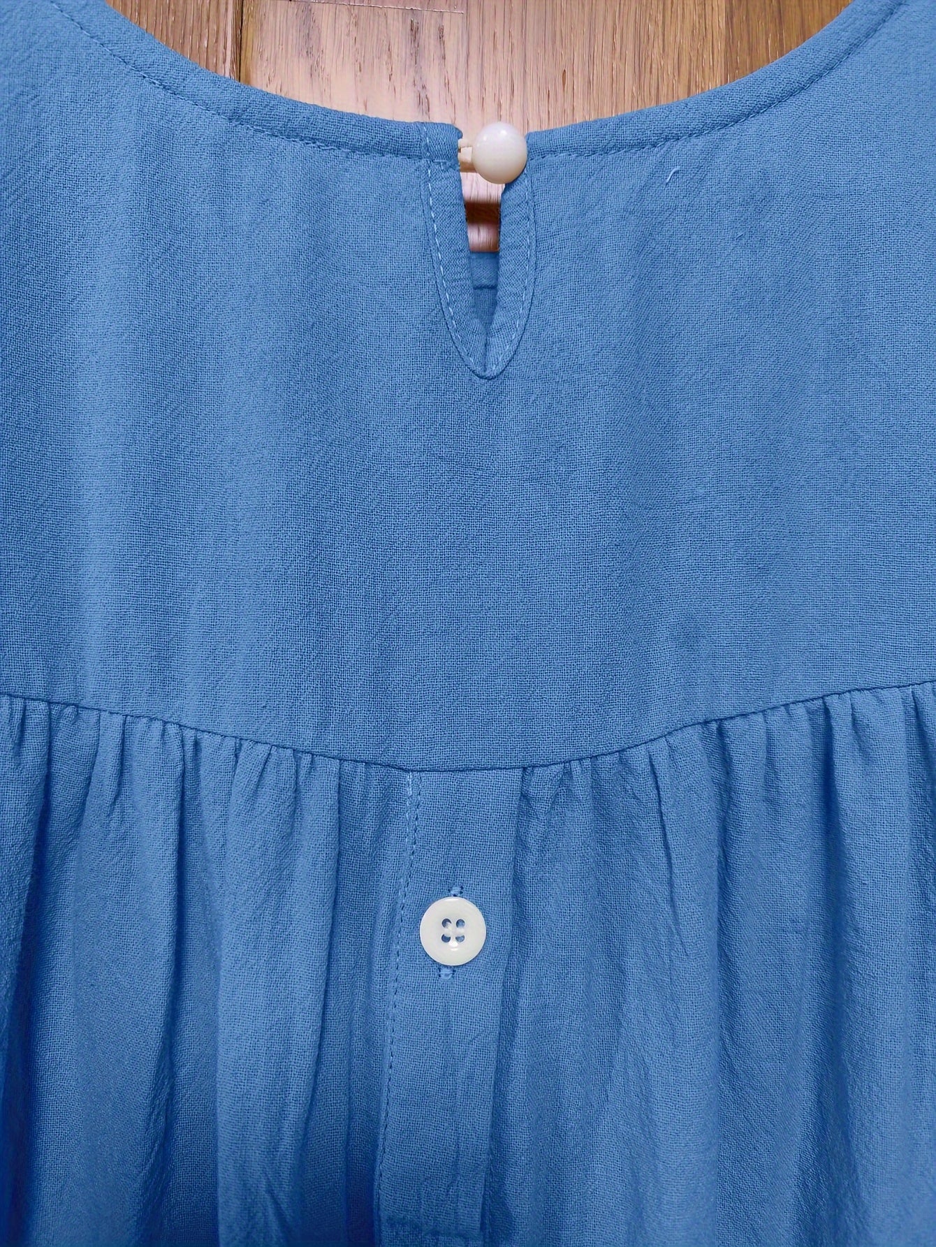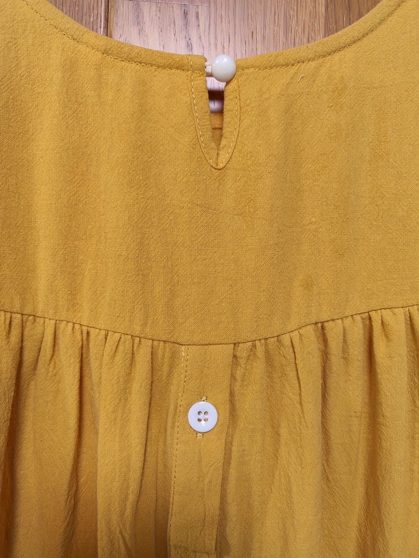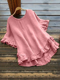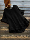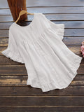 Sale Solid Button Back Ruffled Trim Blouse, Casual Short Sleeve Blouse
