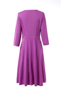 Sale Elegant Round Neck Flared Hem Long Sleeves Tiered Midi Dress