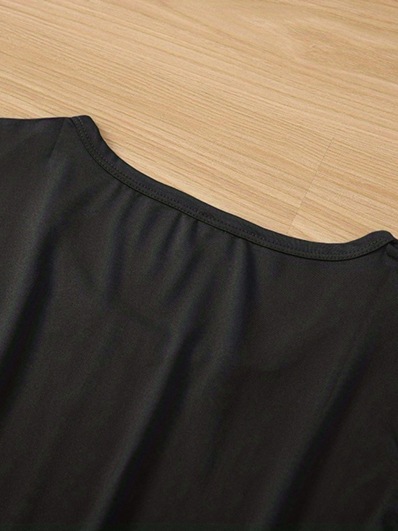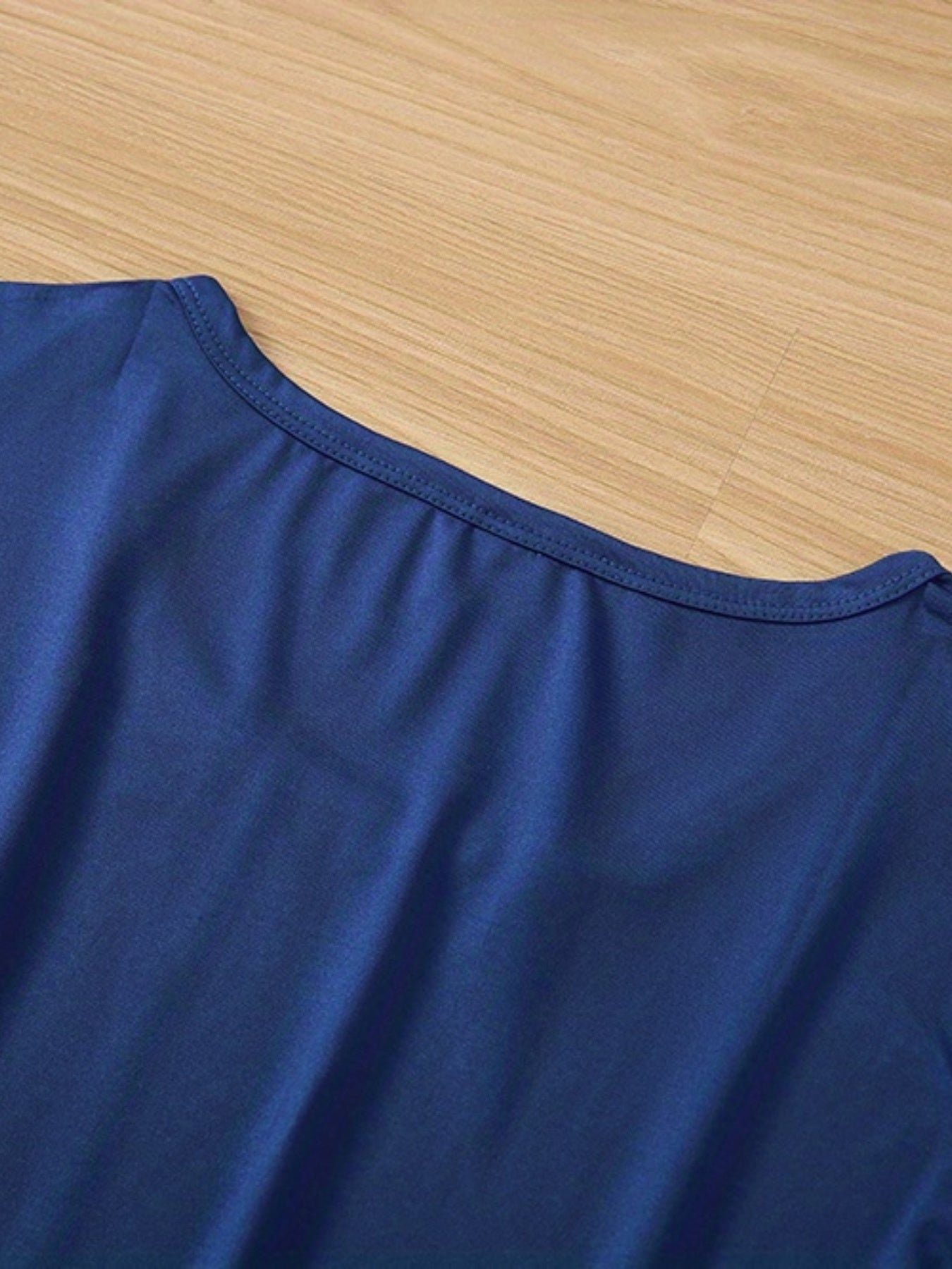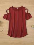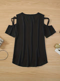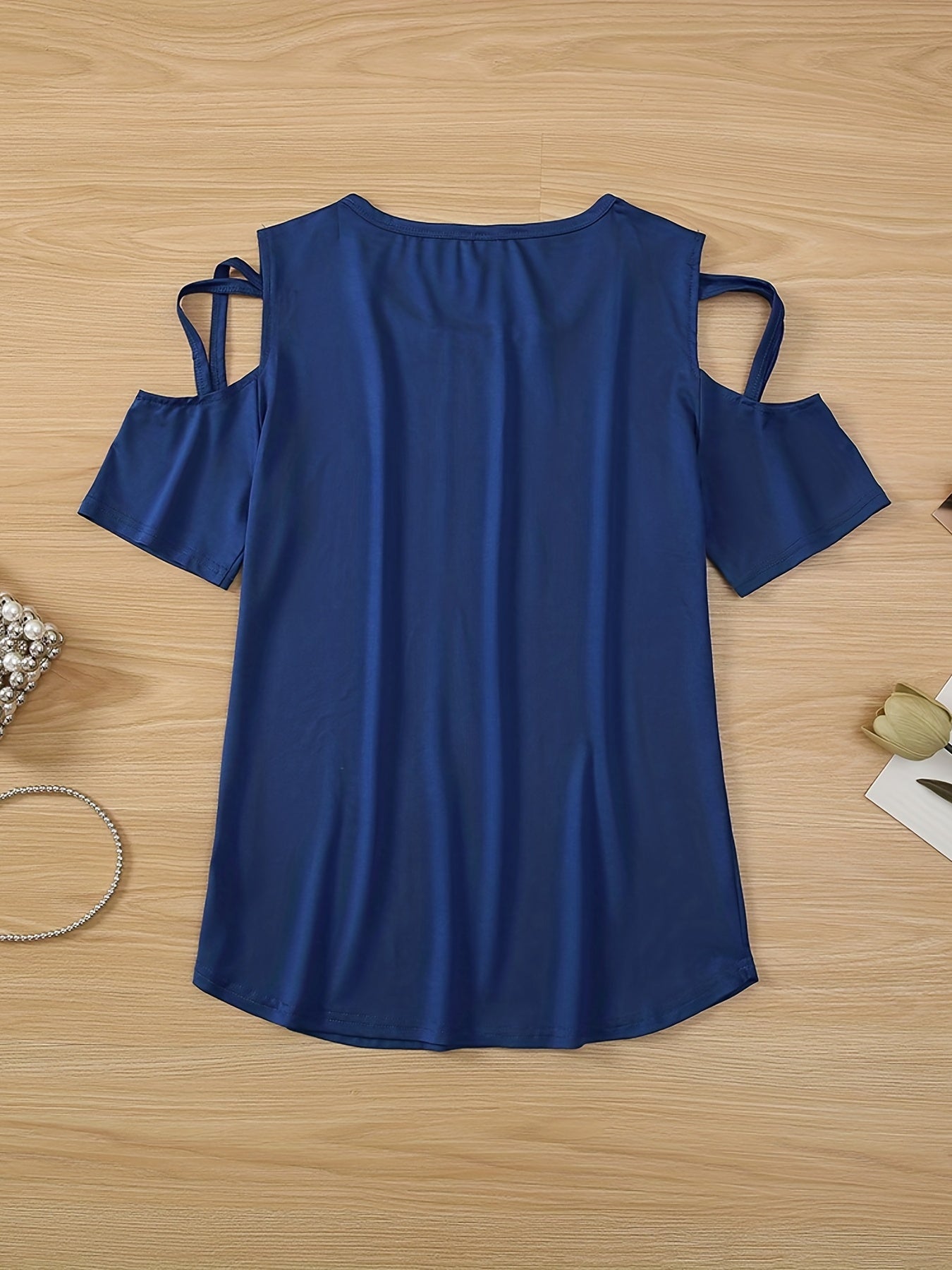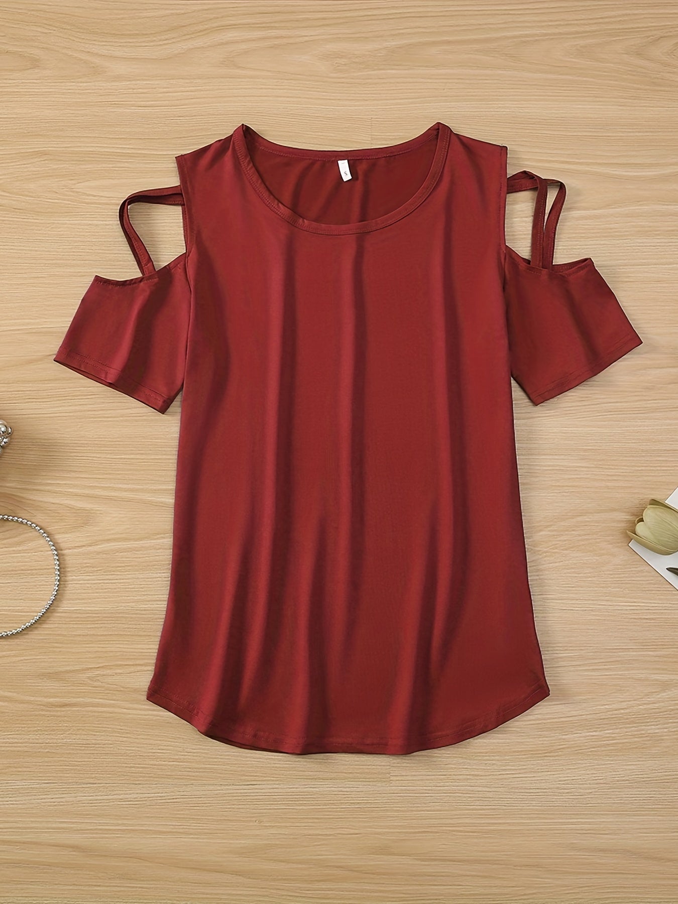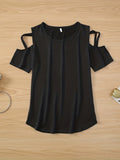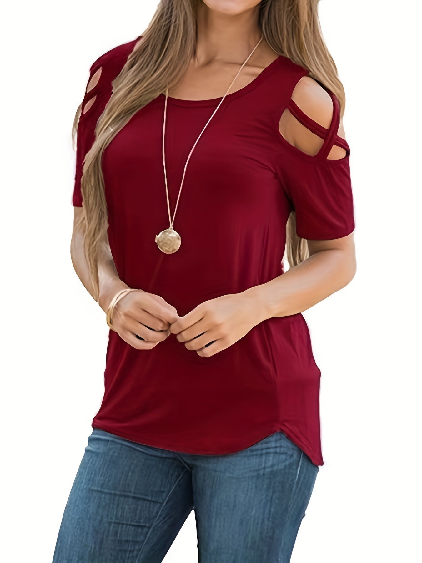 Solid Cold Shoulder T-shirt, Casual Crew Neck Short Sleeve T-shirt