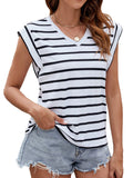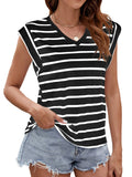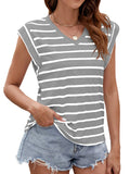 Sale Solid Color Cap Sleeve Blouse, Elegant Crew Neck Loose Blouse