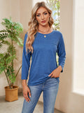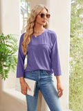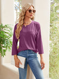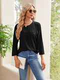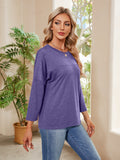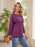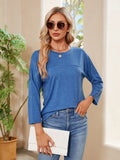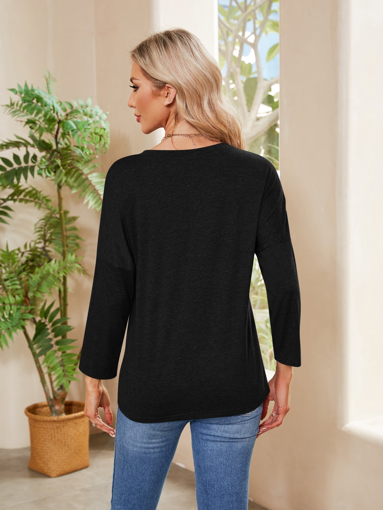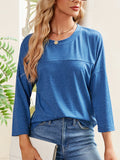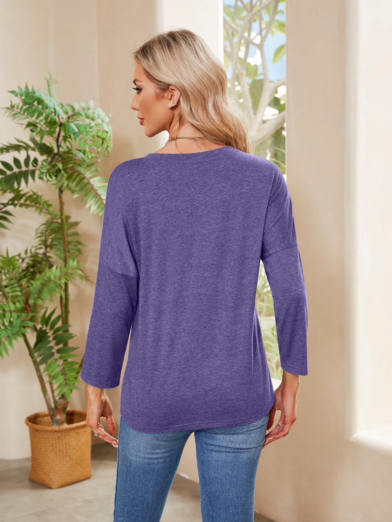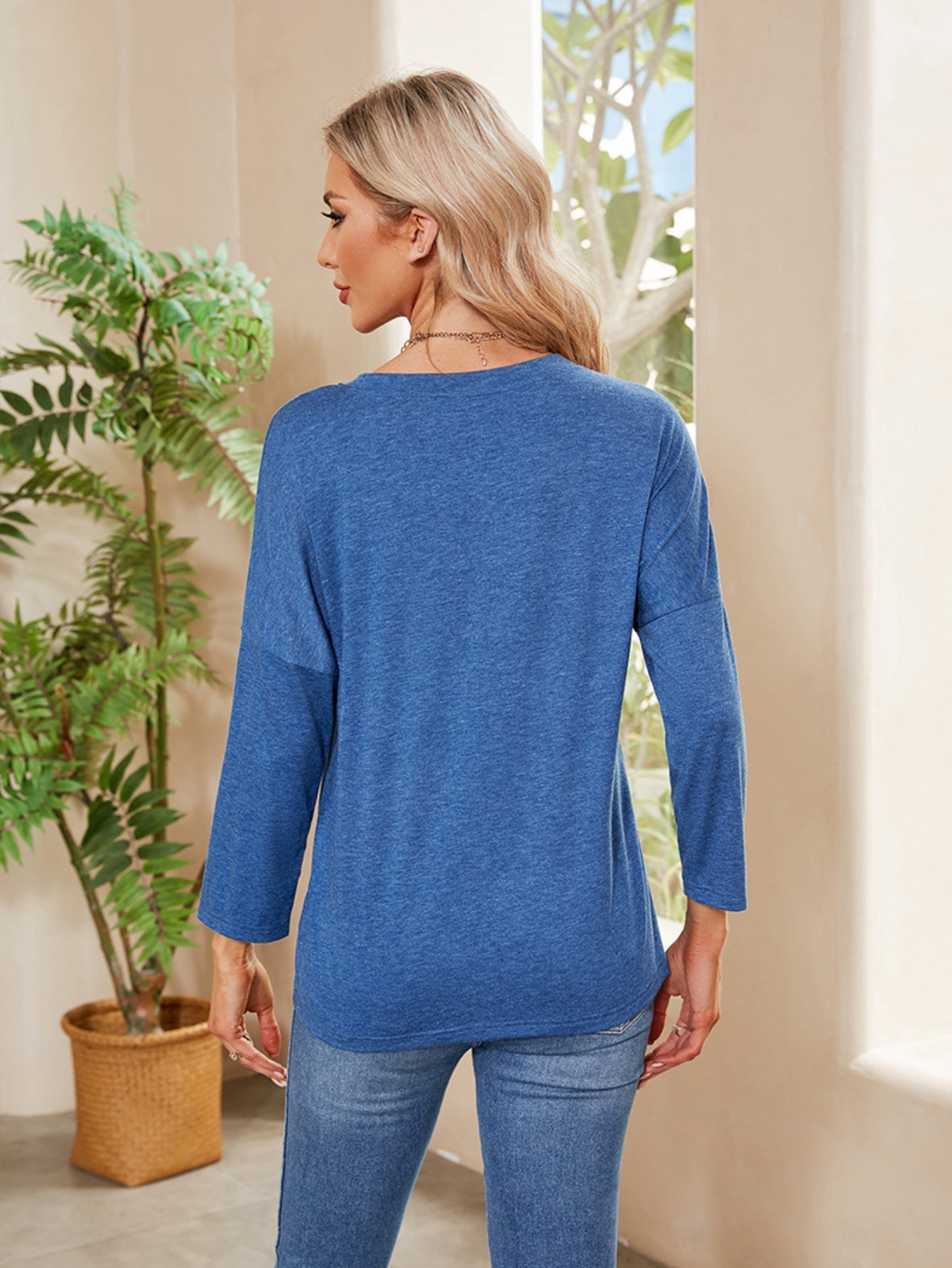 Solid color casual seven-quarter sleeve round neck loose T-shirt