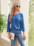 Sale Solid color casual seven-quarter sleeve round neck loose T-shirt