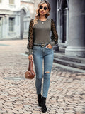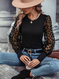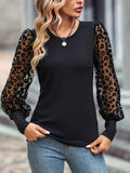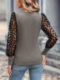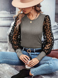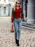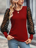 Sale Casual Contrast Lace Round Neck Long Sleeve T-Shirt
