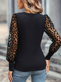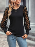 Sale Lace Splicing Swiss Dot V-neck Blouse, Elegant Long Sleeve Blouse Top