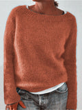 Sale Solid Color Pullover Casual Long Sleeve Cozy Crew Neck Knit Sweater
