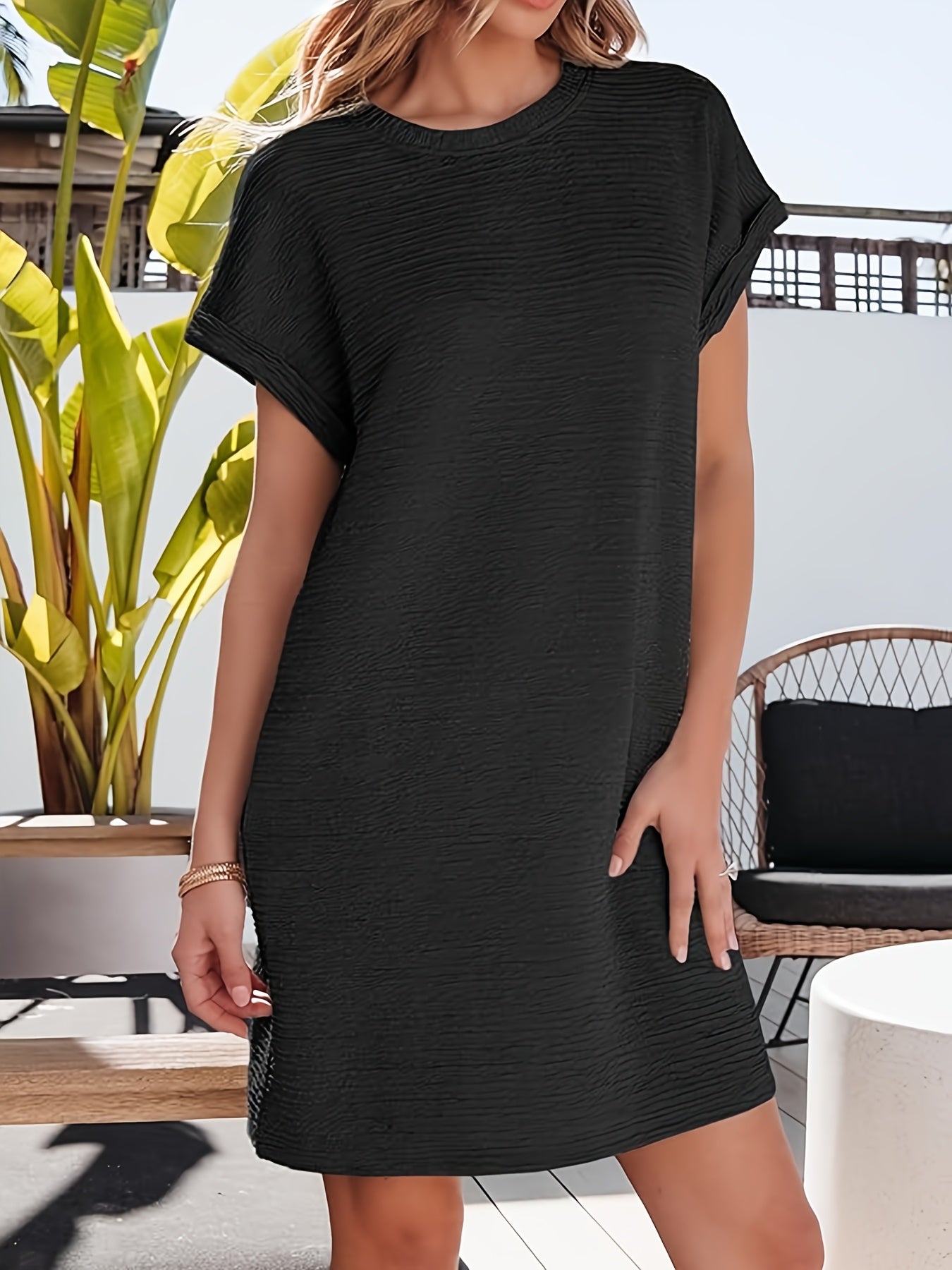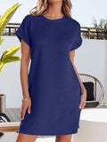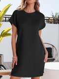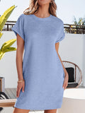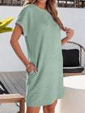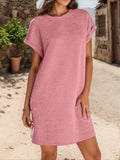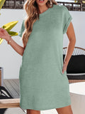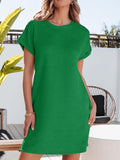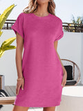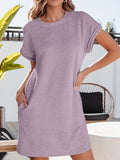 Solid Color Round Neck Loose Short Sleeve Pocket Dress