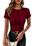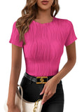 Sale Solid Color Textured Slim T-Shirt, Elegant Short Sleeve T-Shirt