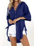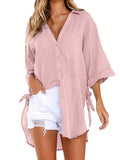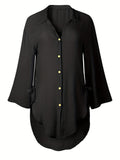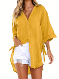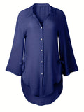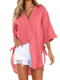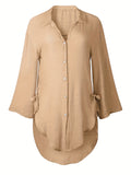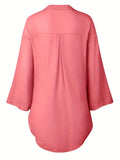 Sale Solid Color V Neck Blouse, Casual Half Sleeve Blouse