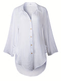 V Neck Long Sleeve Plain Regular Micro-Elasticity Shirt
