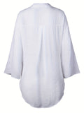 Solid Color V Neck Blouse, Casual Half Sleeve Blouse