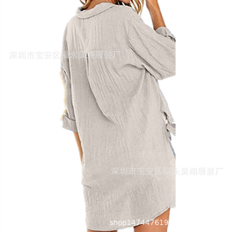 Sale Women's Button Print Long Sleeve Casual Basic Shirt Collar Shirt Blouse