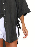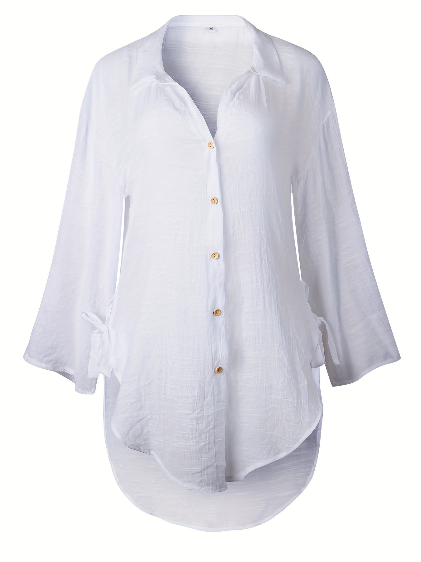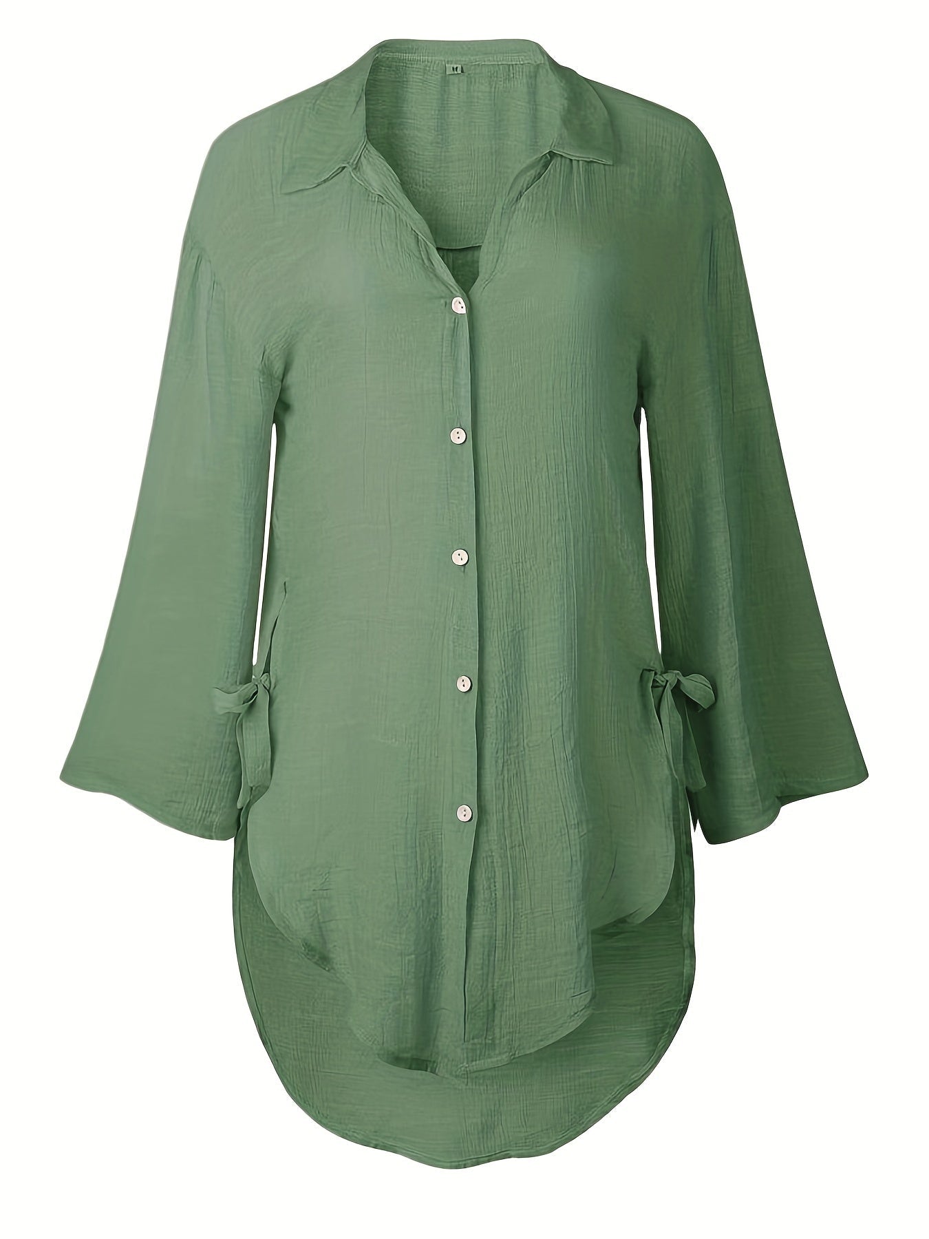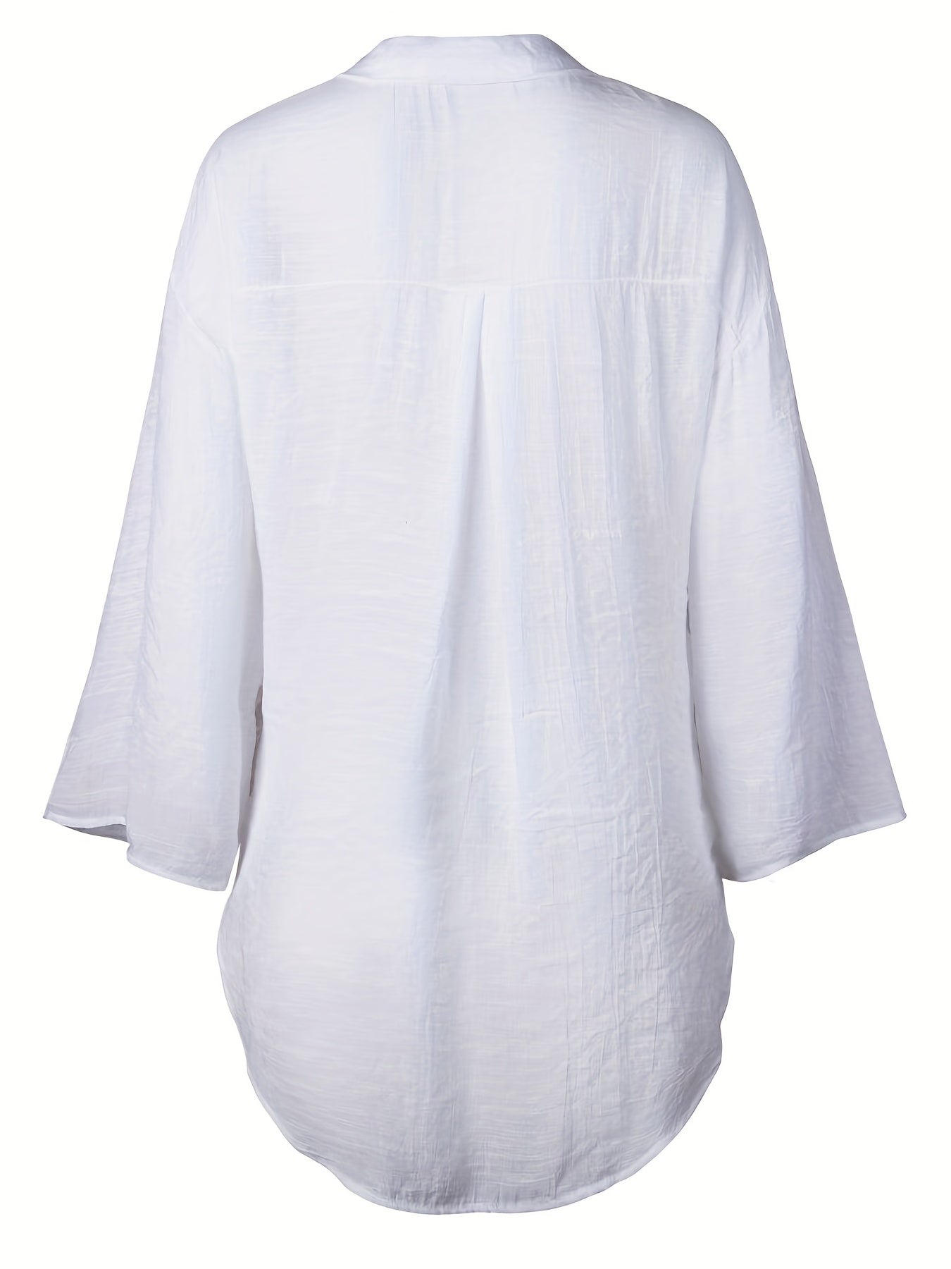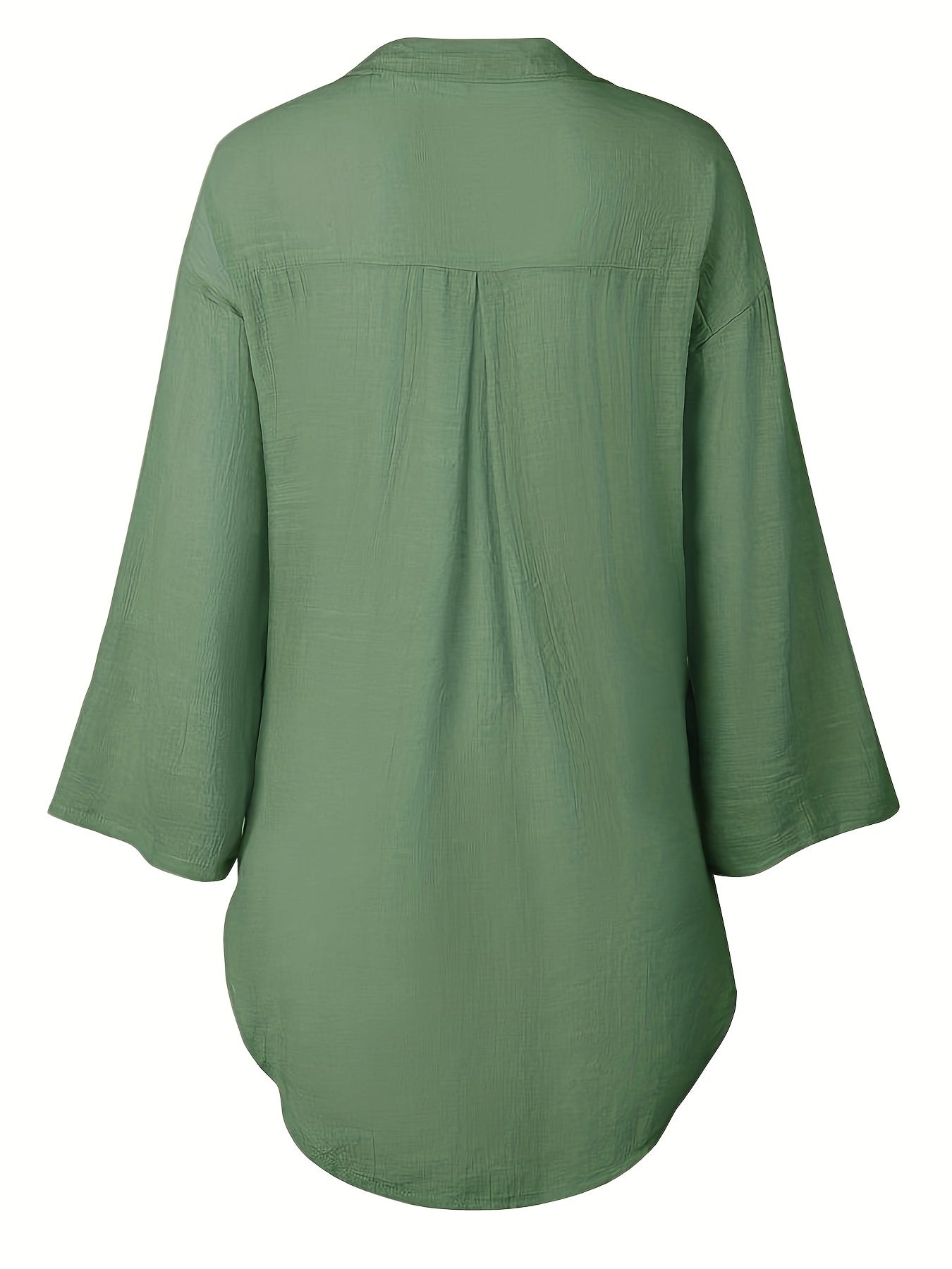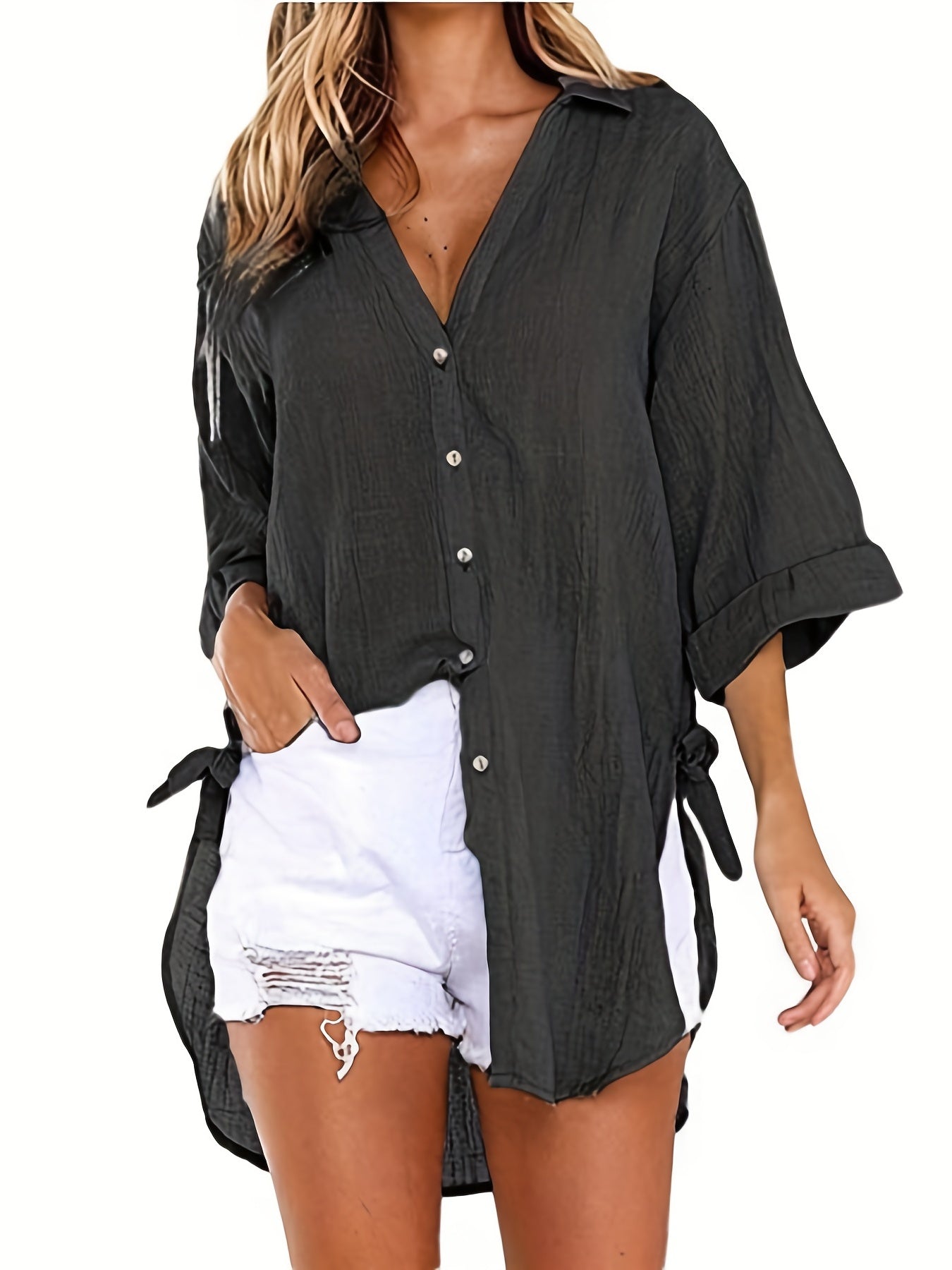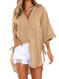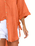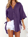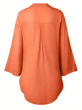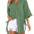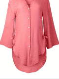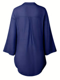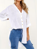 Sale Solid Color V Neck Blouse, Casual Half Sleeve Blouse