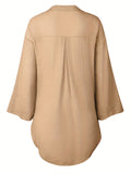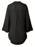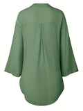 Solid Color V Neck Blouse, Casual Half Sleeve Blouse
