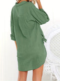 V Neck Long Sleeve Plain Regular Micro-Elasticity Shirt