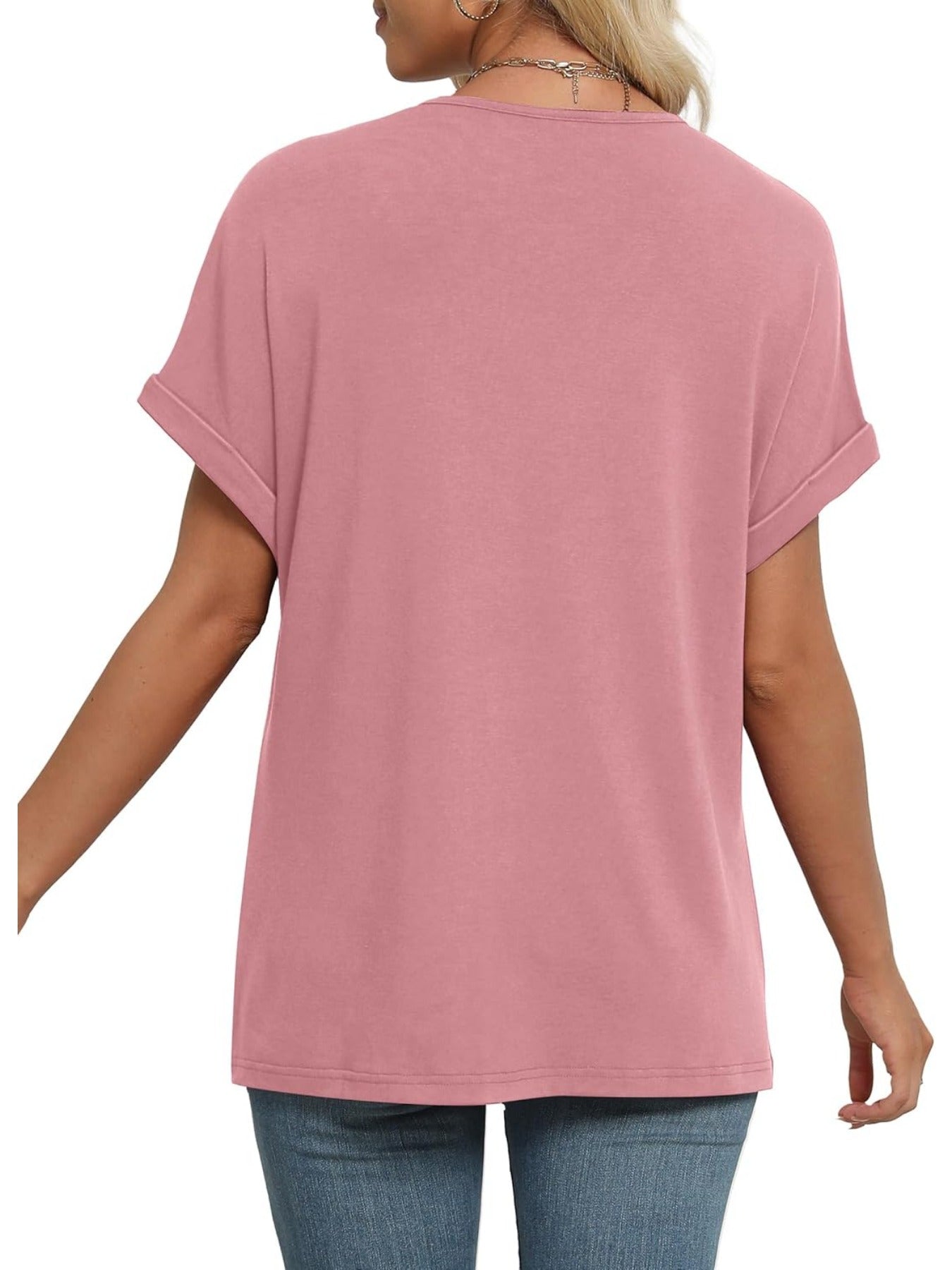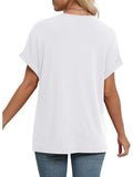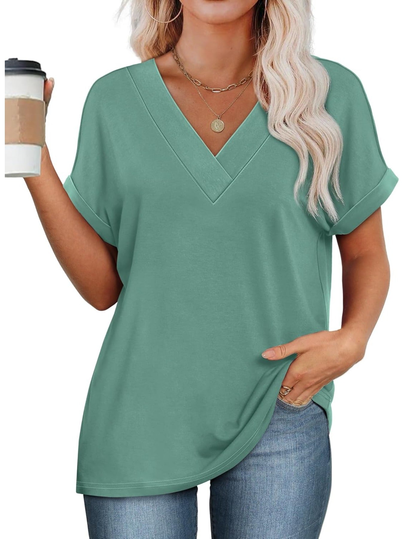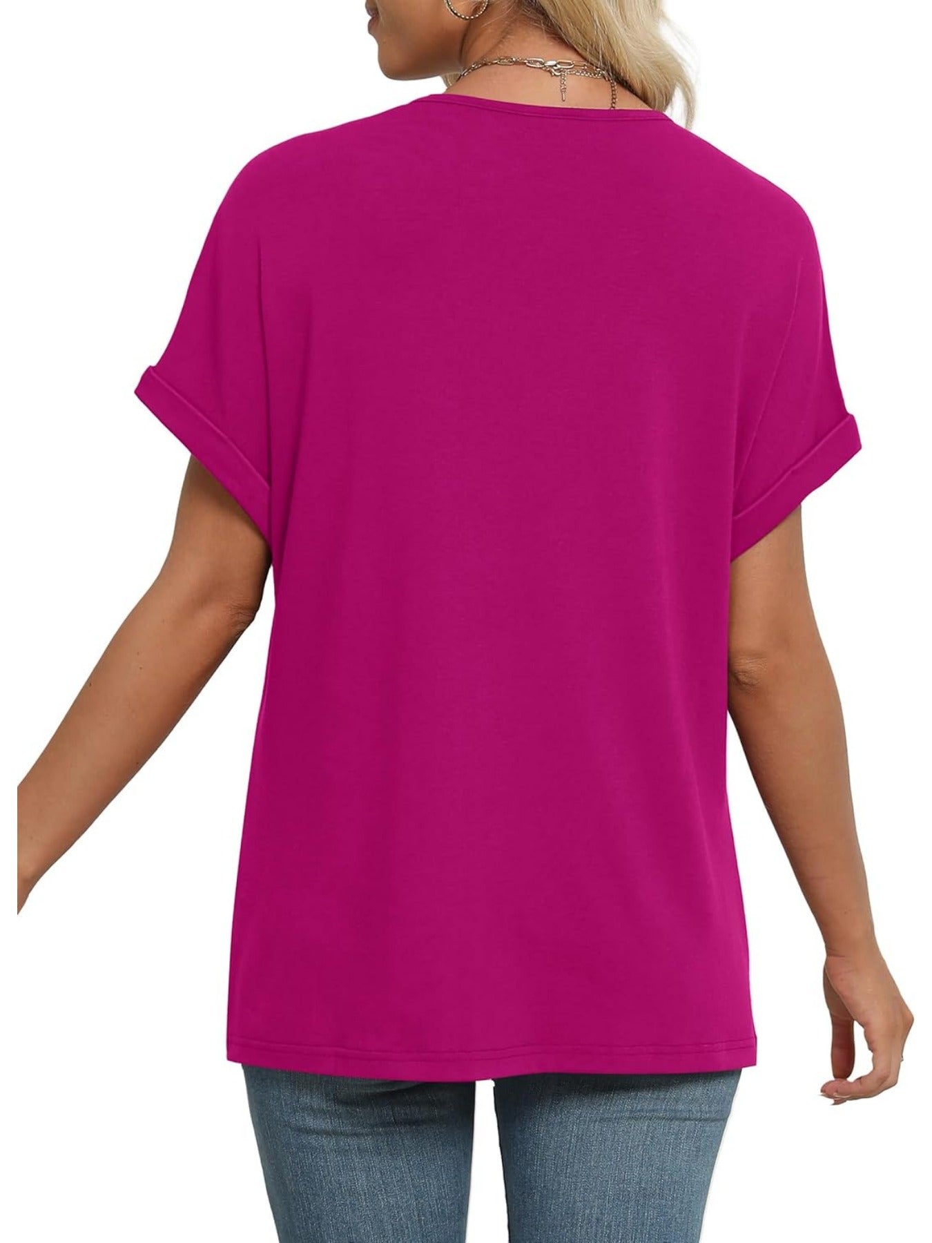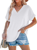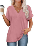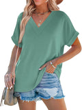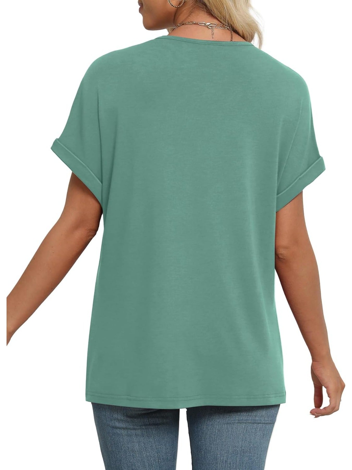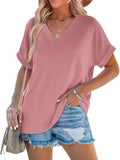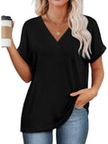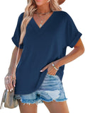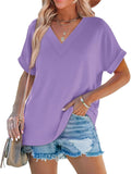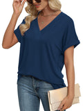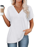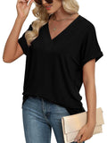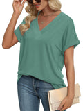 Solid Color V Neck Short Dolman Sleeve Shirts