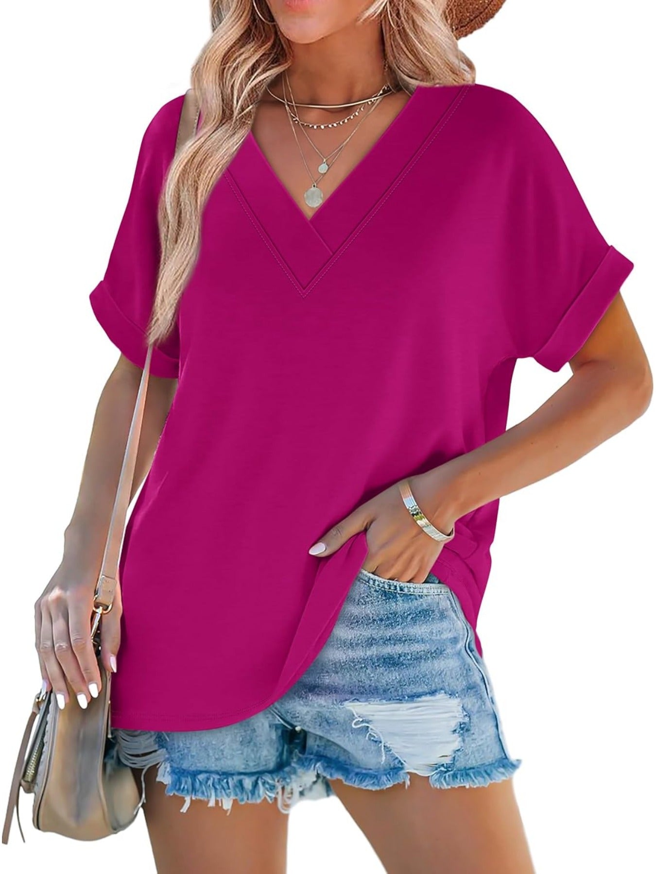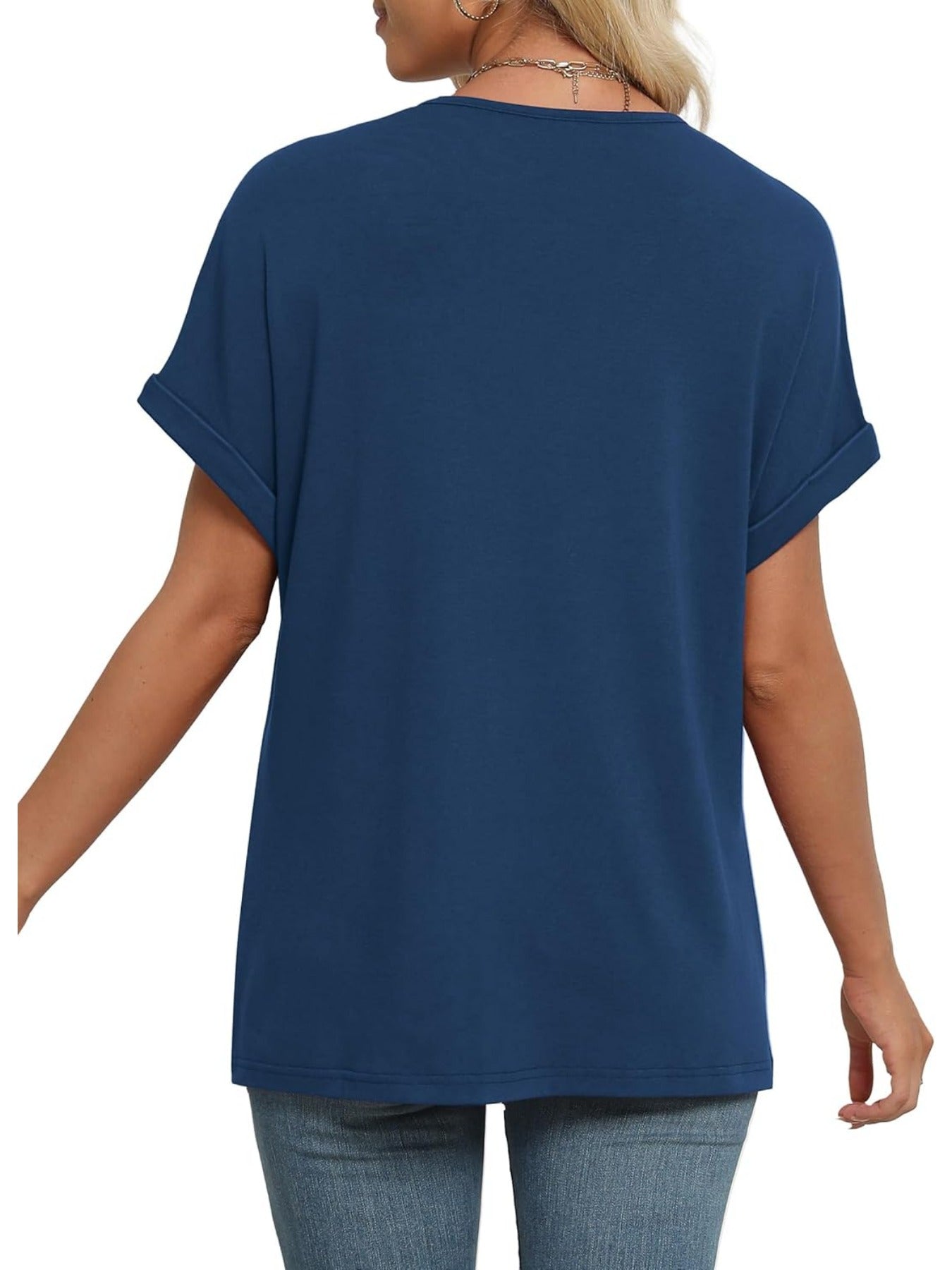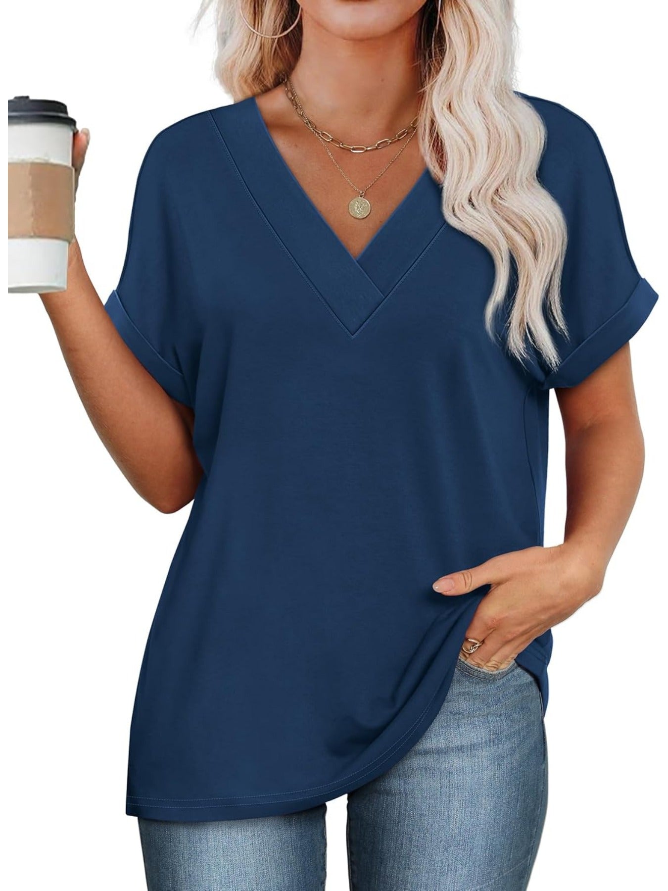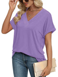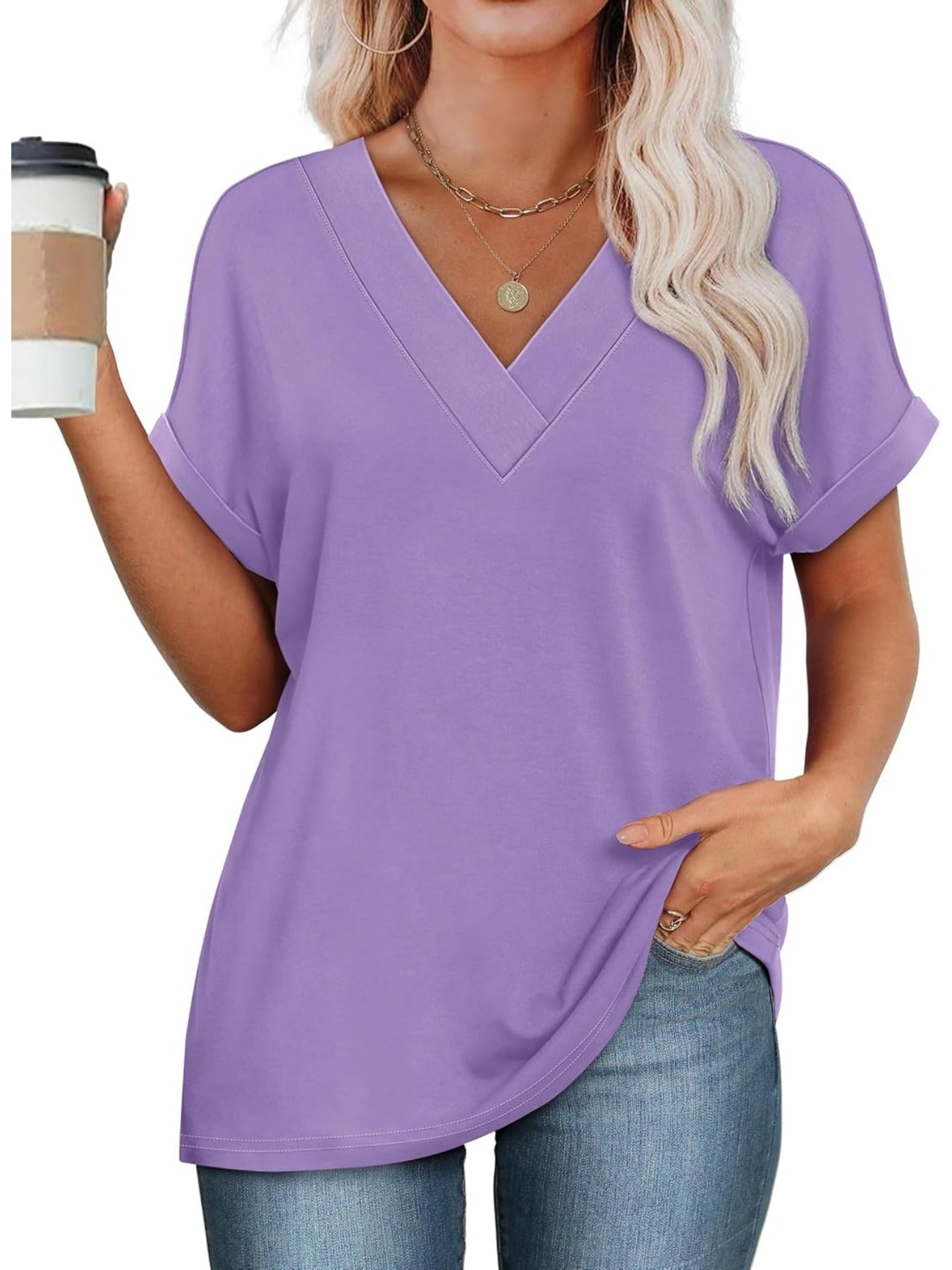 Solid Color V Neck Short Dolman Sleeve Shirts