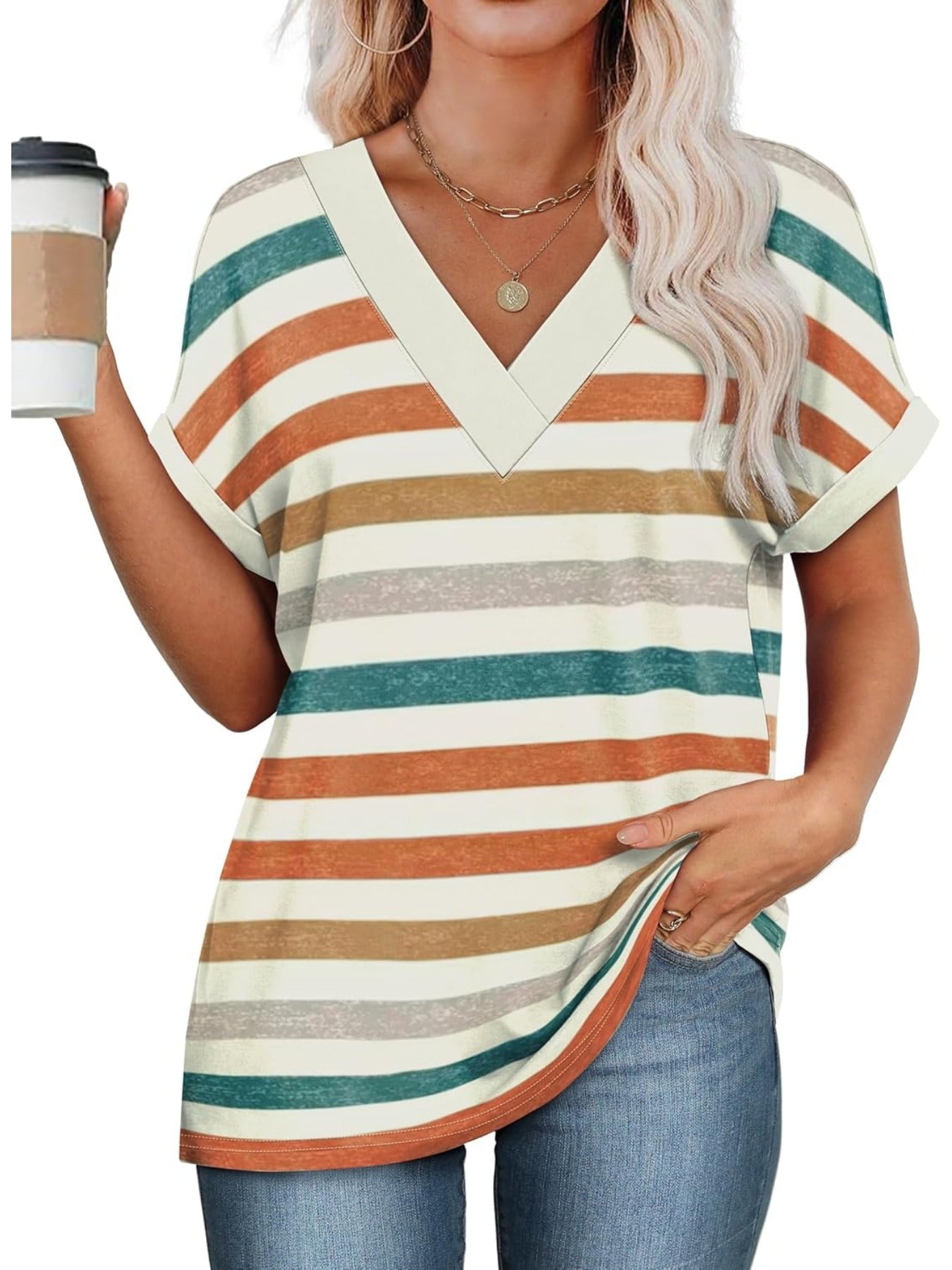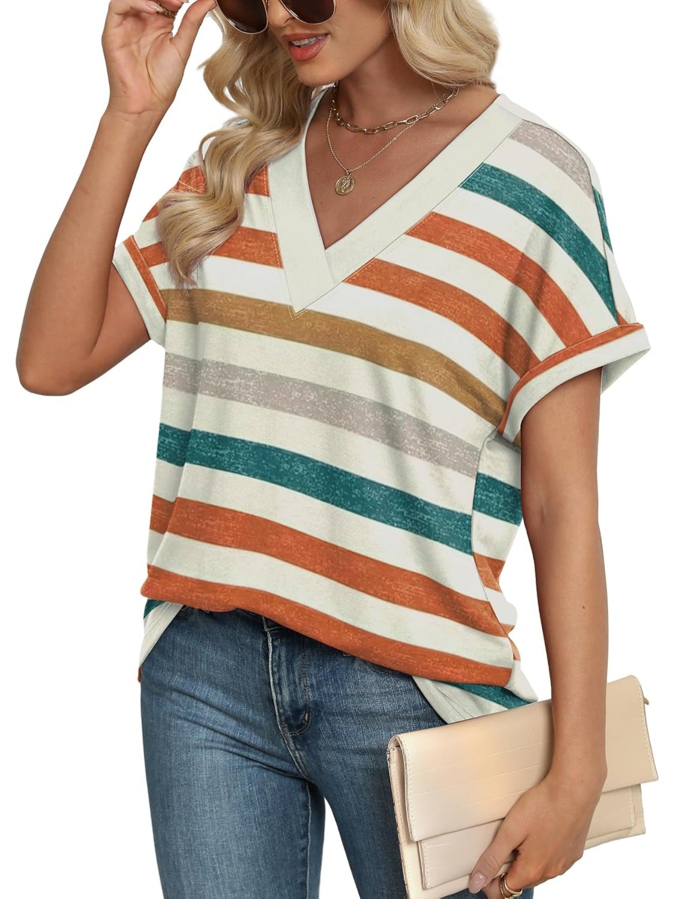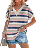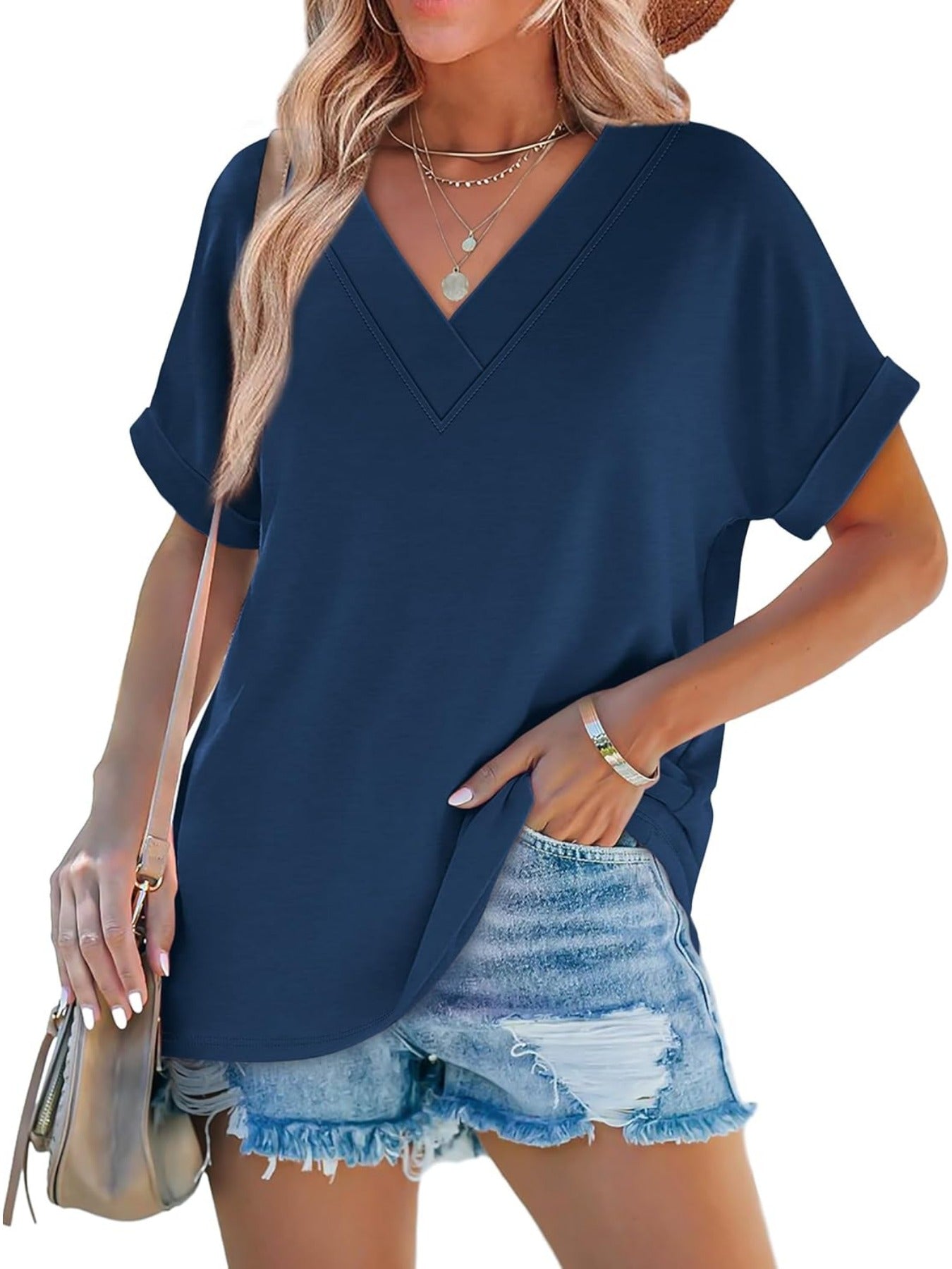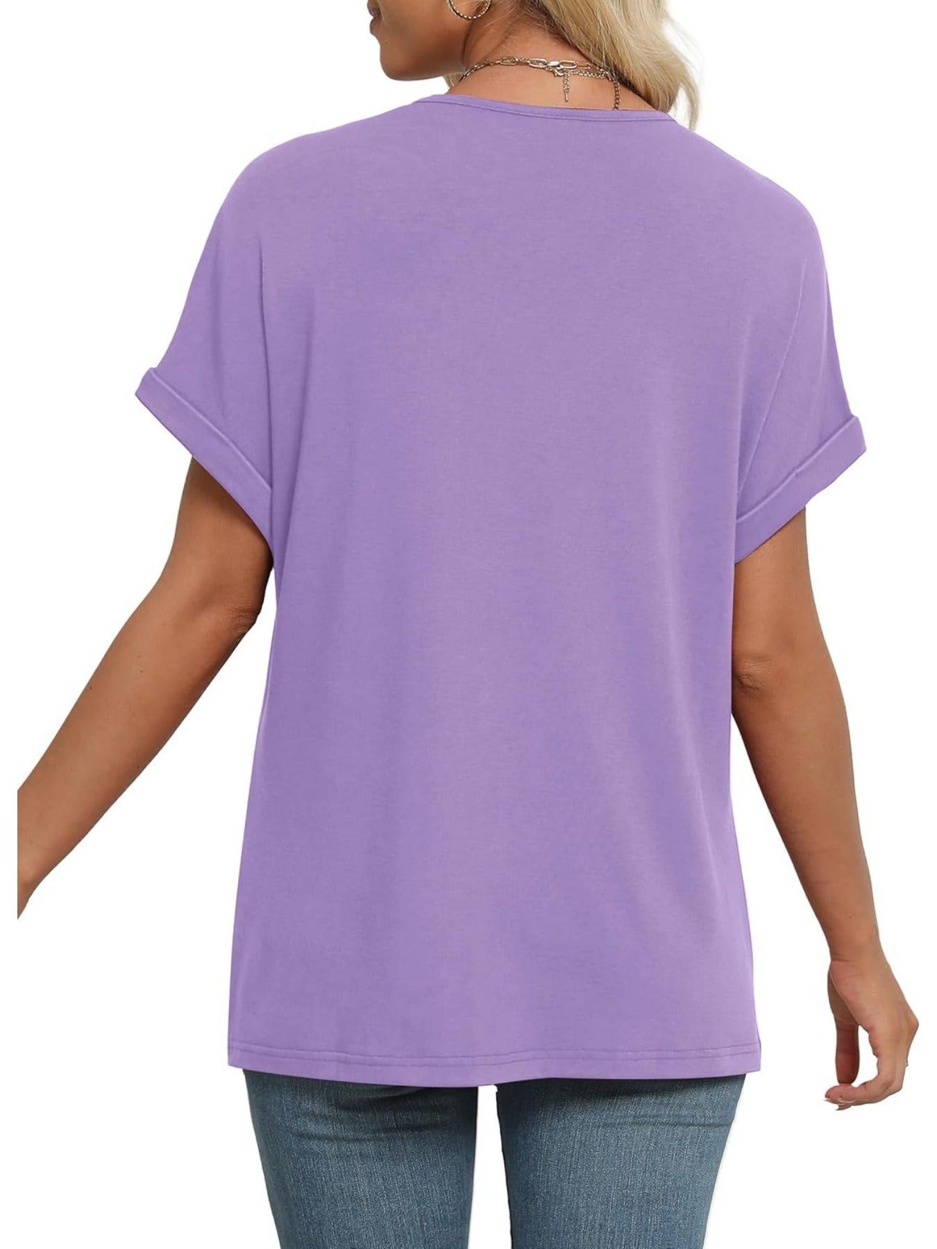 Solid Color V Neck Short Dolman Sleeve Shirts