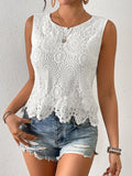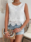 Sale Sleeveless Lace Floral Square Neck Tank Top
