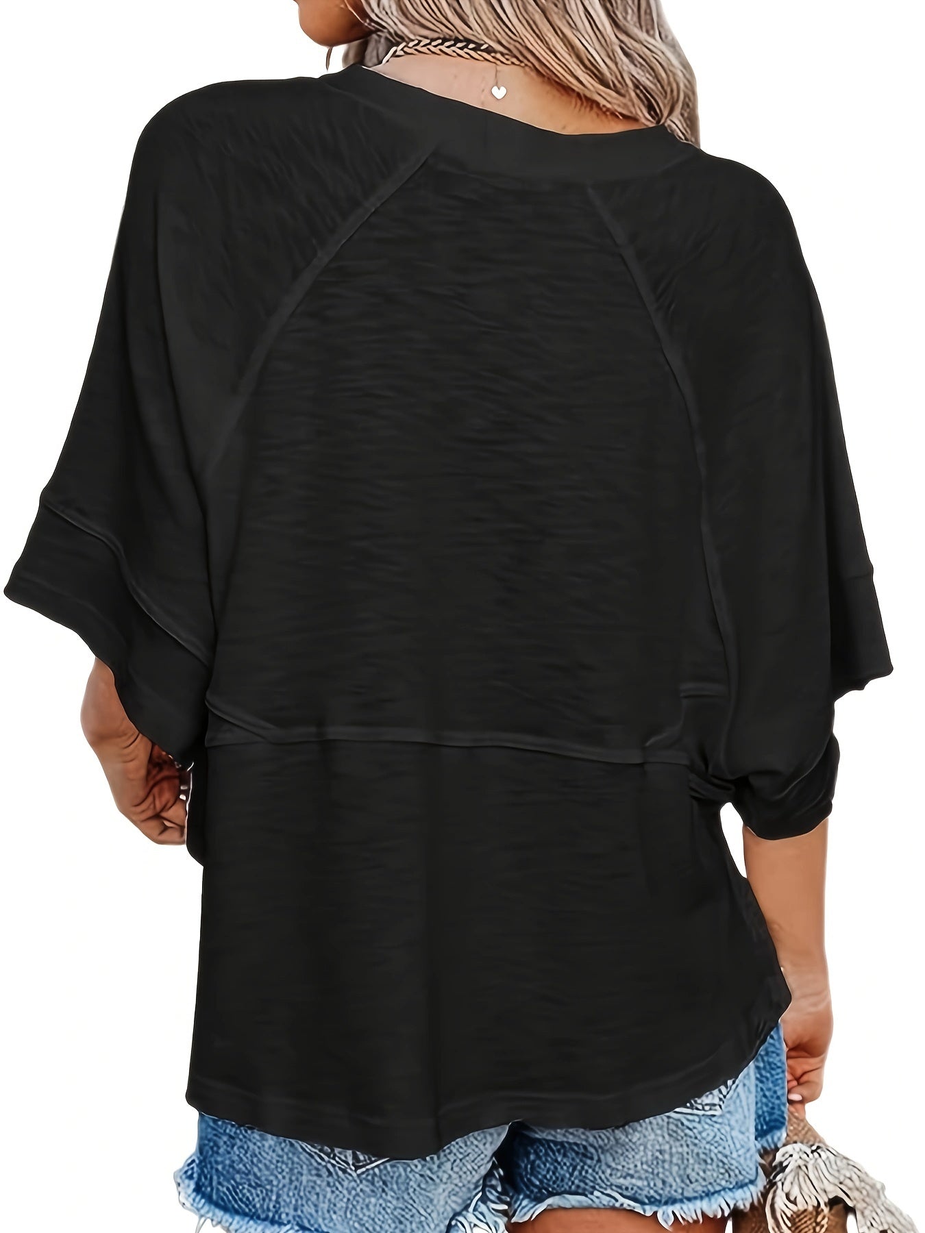 Solid Crew Neck Loose Basic T-shirt, Casual Half Sleeve T-Shirt