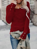 Sale Striped Botton Crew Neck T-Shirt, Elegant Long Sleeve T-Shirt