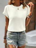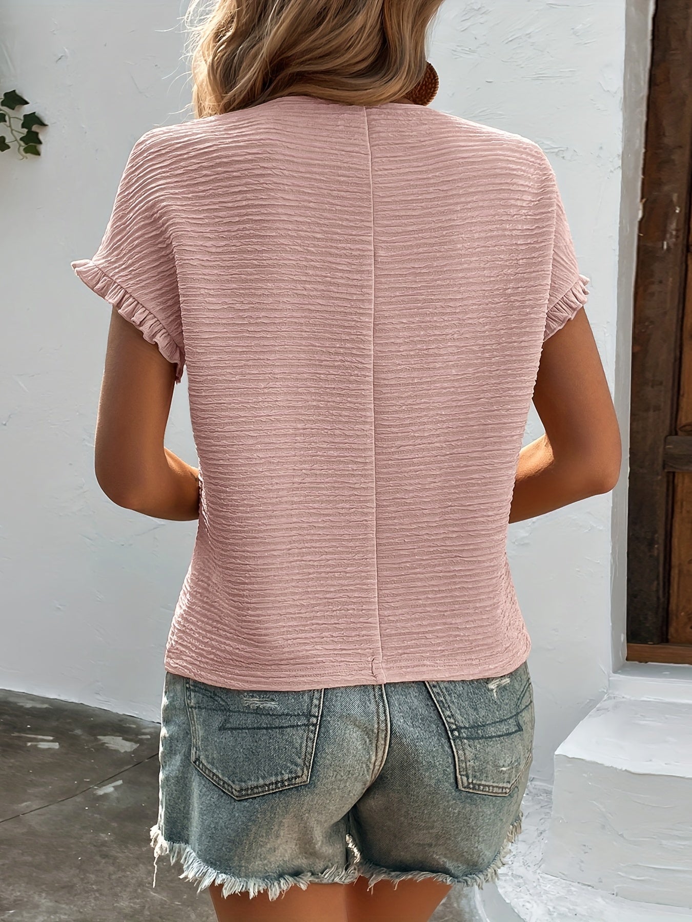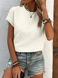 Solid Lettuce Trim T-shirt, Casual Crew Neck Short Sleeve Summer T-shirt