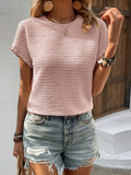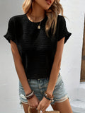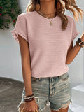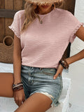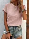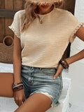 Sale Solid Lettuce Trim T-shirt, Casual Crew Neck Short Sleeve Summer T-shirt