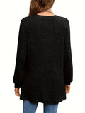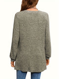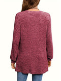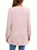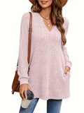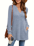 Solid Notched Neck Simple Tunics, Versatile Long Sleeve Top