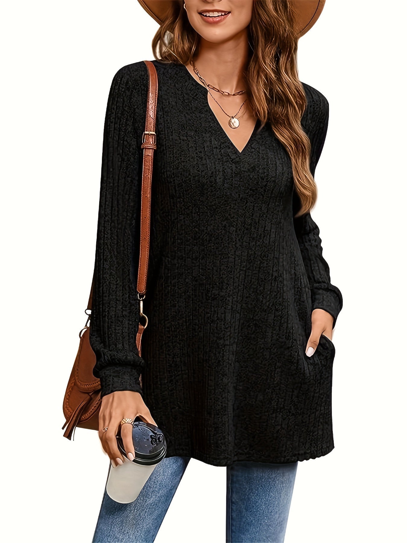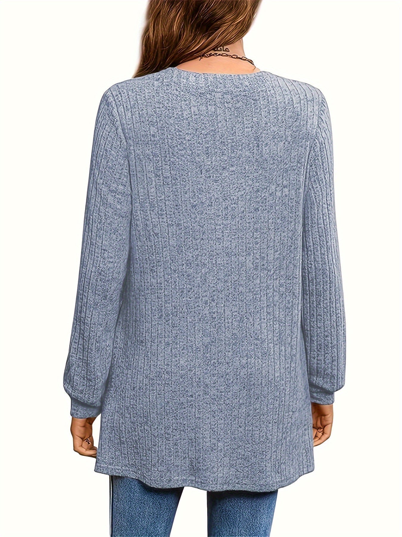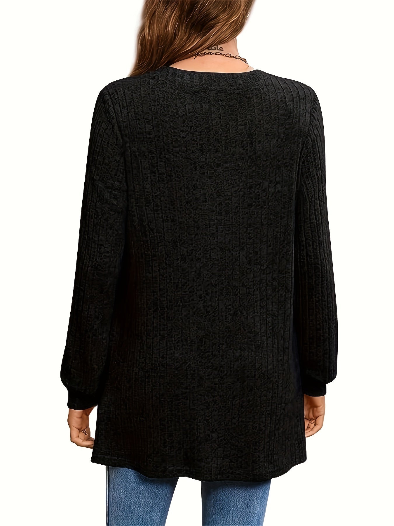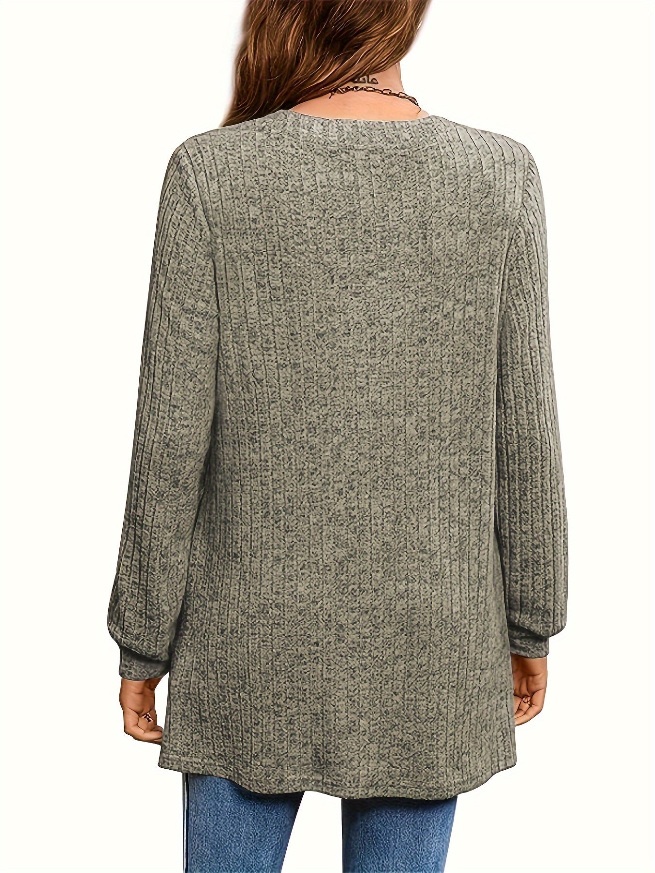 Sale Solid Notched Neck Simple Tunics, Versatile Long Sleeve Top