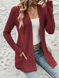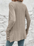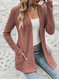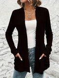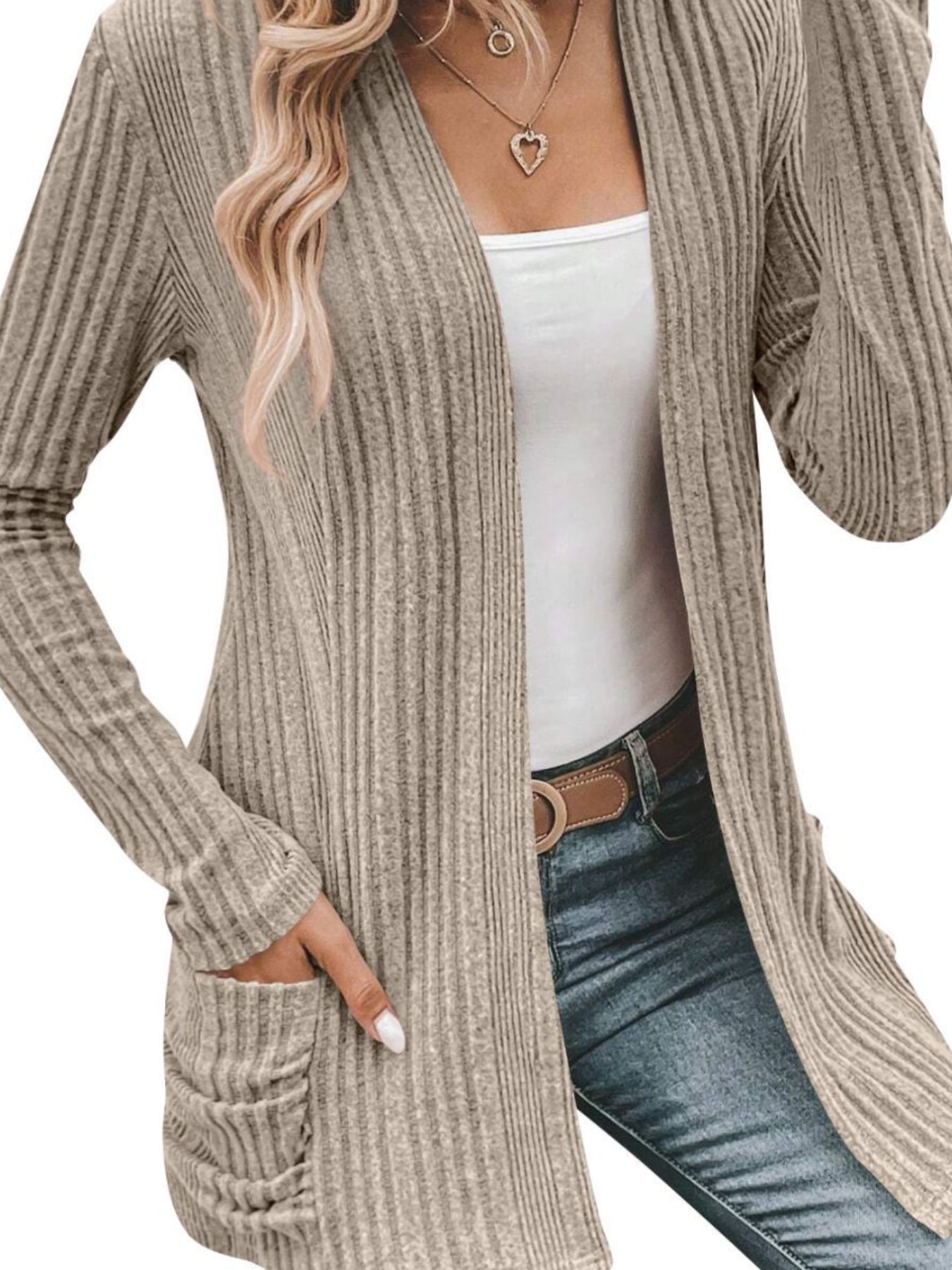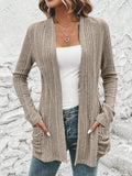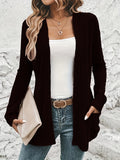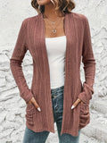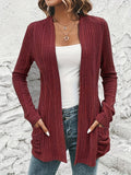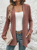 Sale Solid Open Front Rib Knit Cardigan, Casual Long Sleeve Slim Cardigan With Pocket