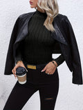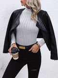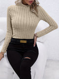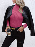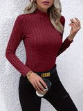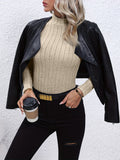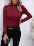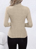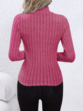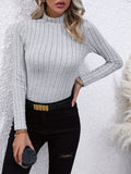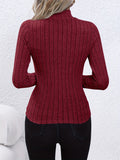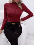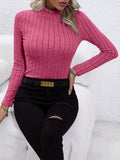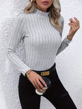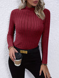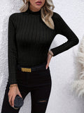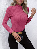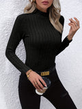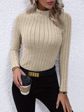 Sale Solid Ribbed Mock Neck Pullover Sweater, Elegant Long Sleeve Sweater