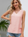 Solid Sleeveless Blouse, Casual V Neck Versatile Summer Tank Tops