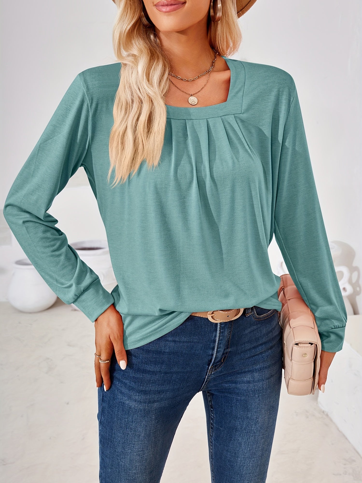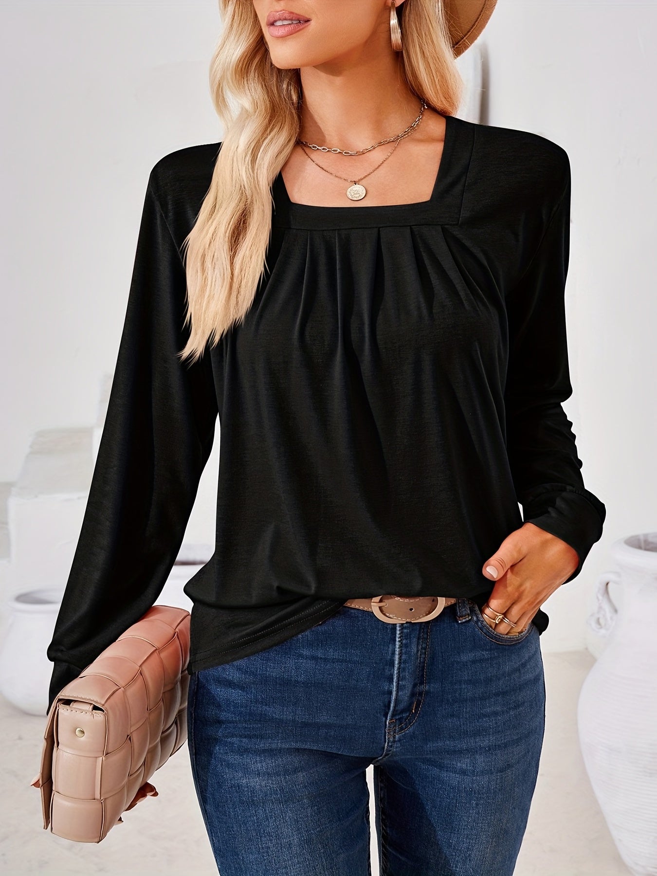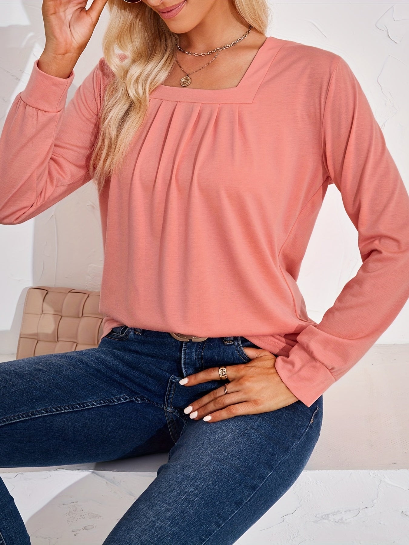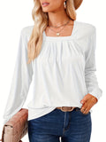Solid Square Long Sleeve T-Shirt, Casual T-Shirt