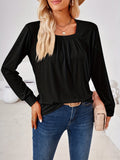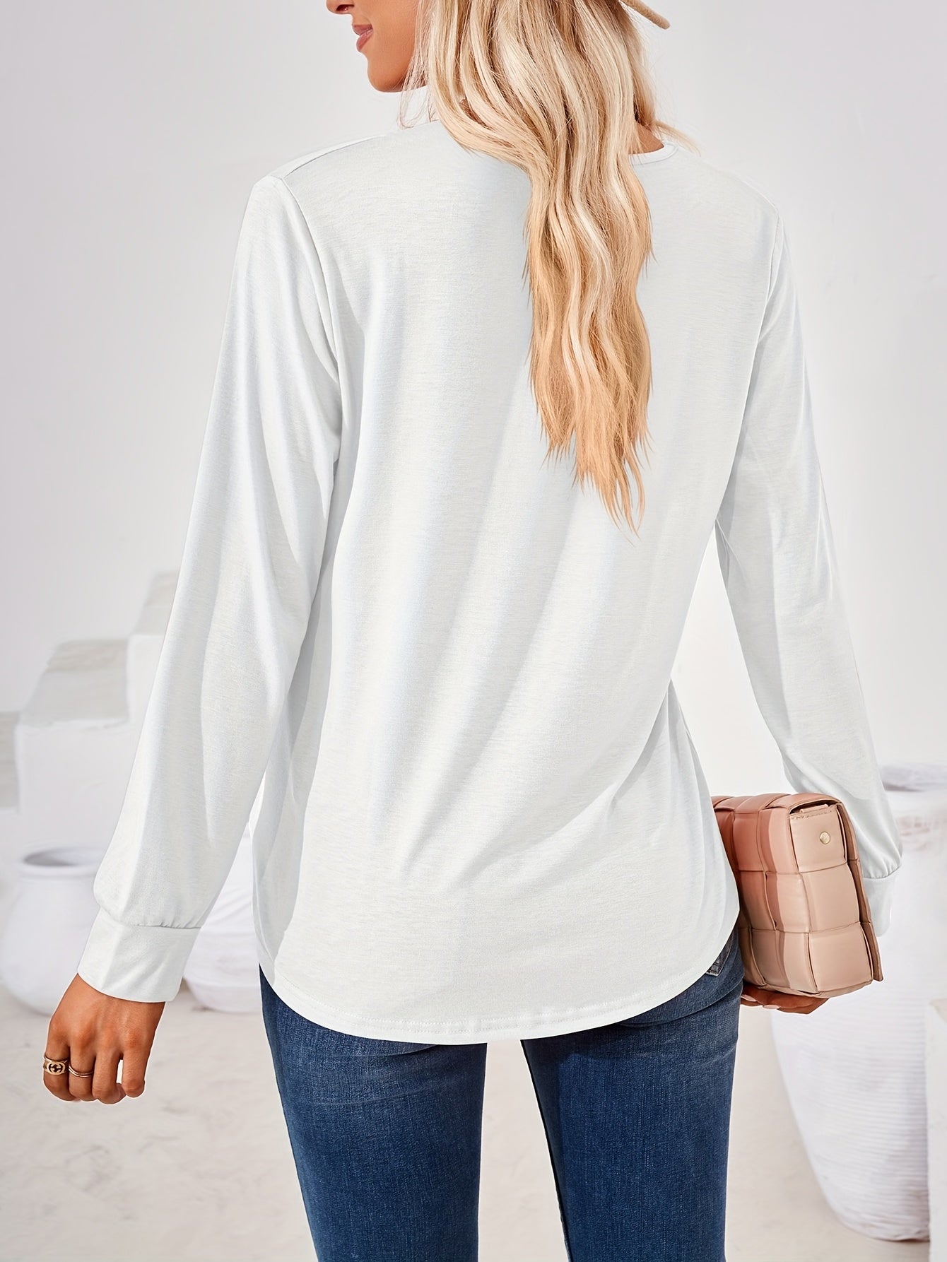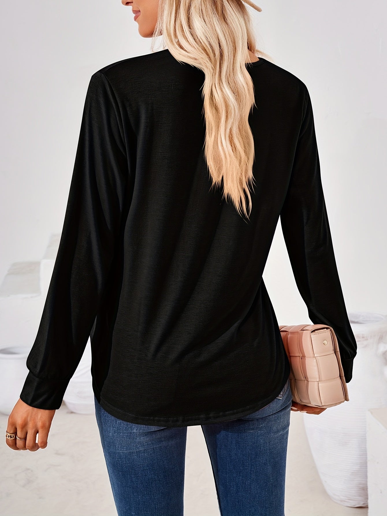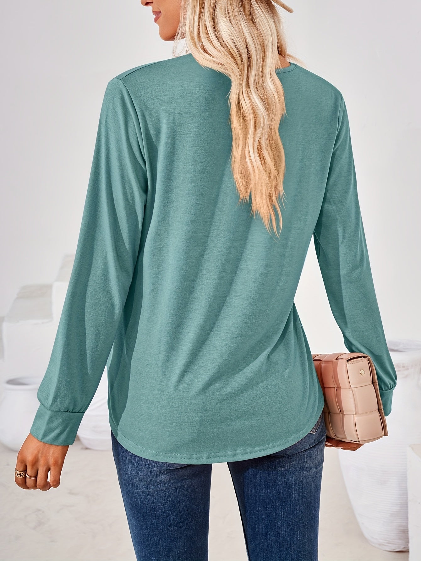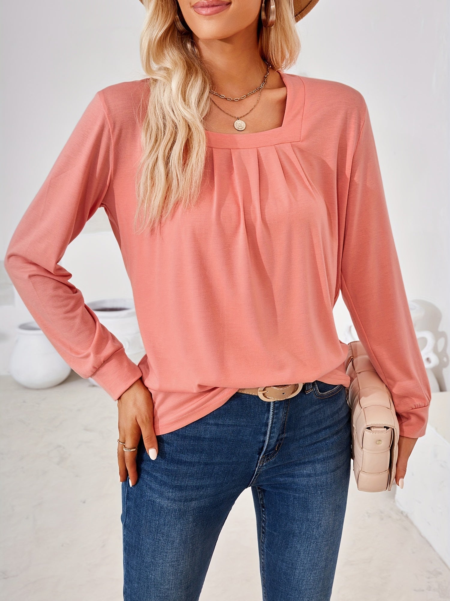 Solid Square Long Sleeve T-Shirt, Casual T-Shirt
