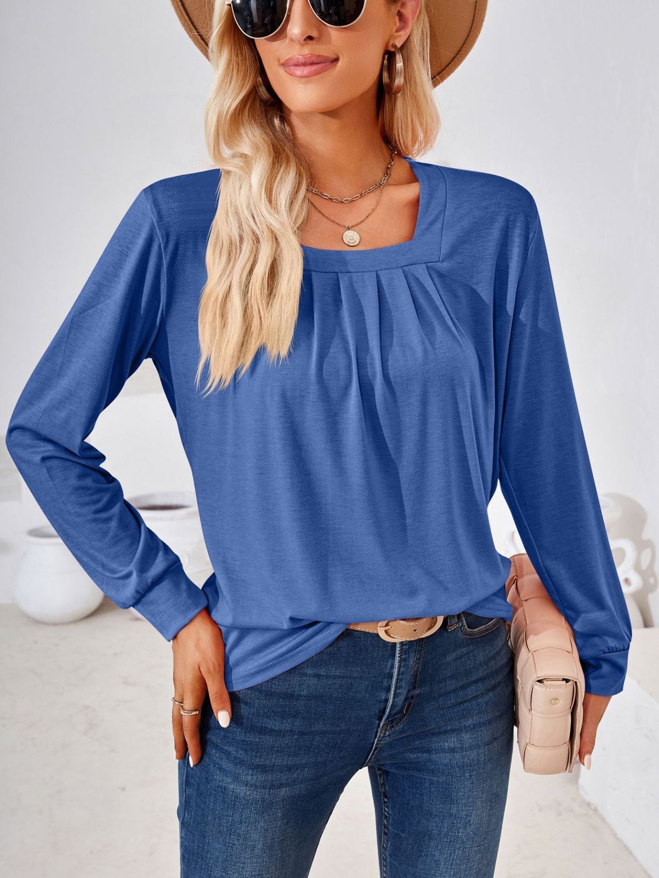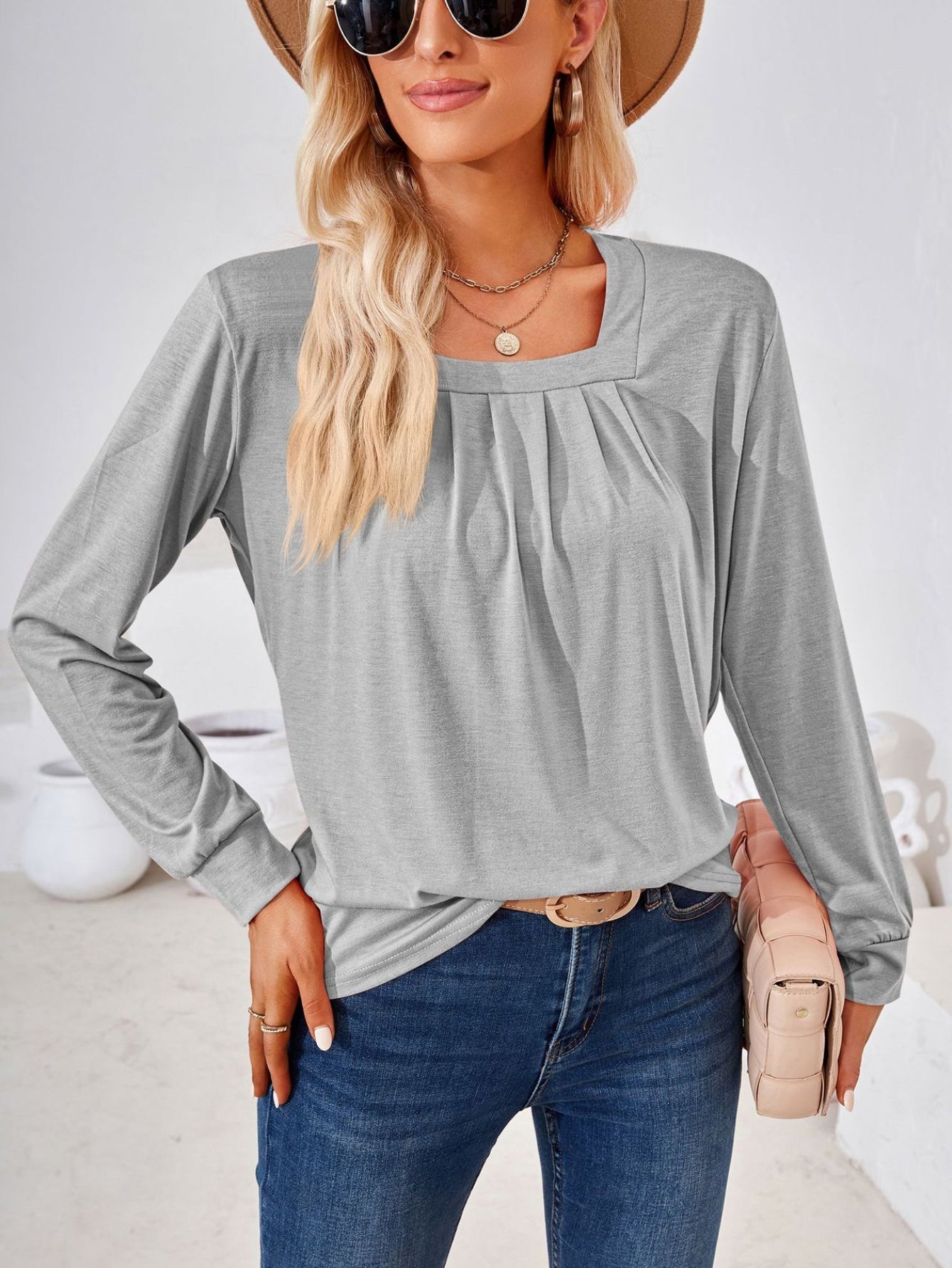 Sale Solid Square Long Sleeve T-Shirt, Casual T-Shirt