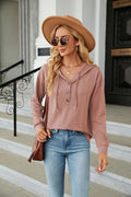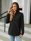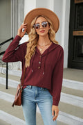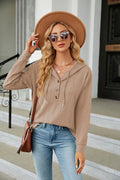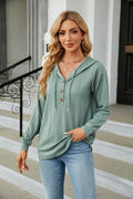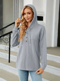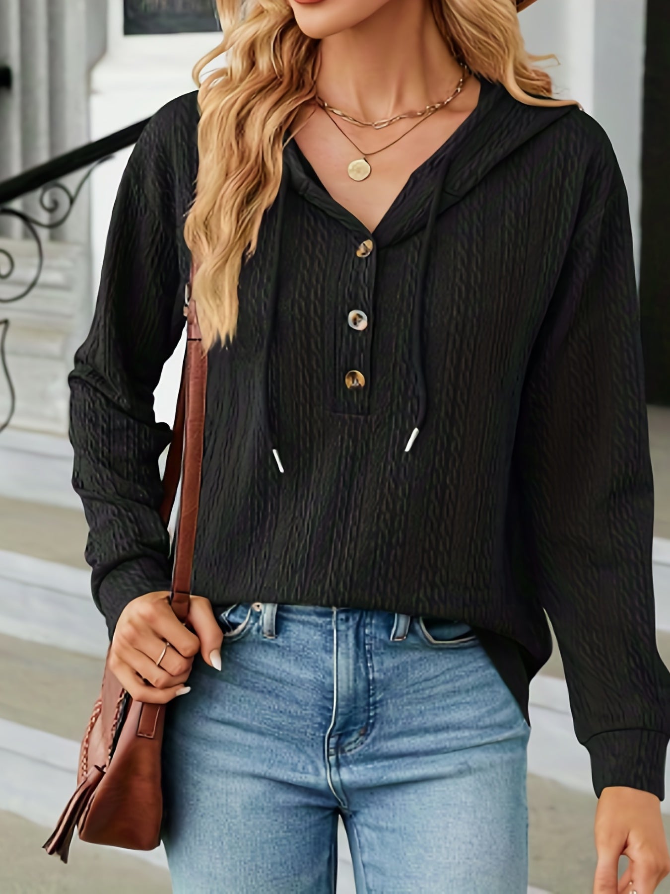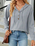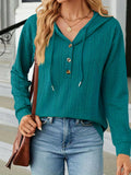Sale Solid Textured Button Up Long Sleeve Drawstring Hoodie