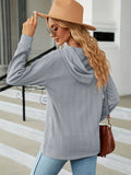 Solid Textured Button Up Long Sleeve Drawstring Hoodie