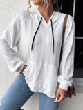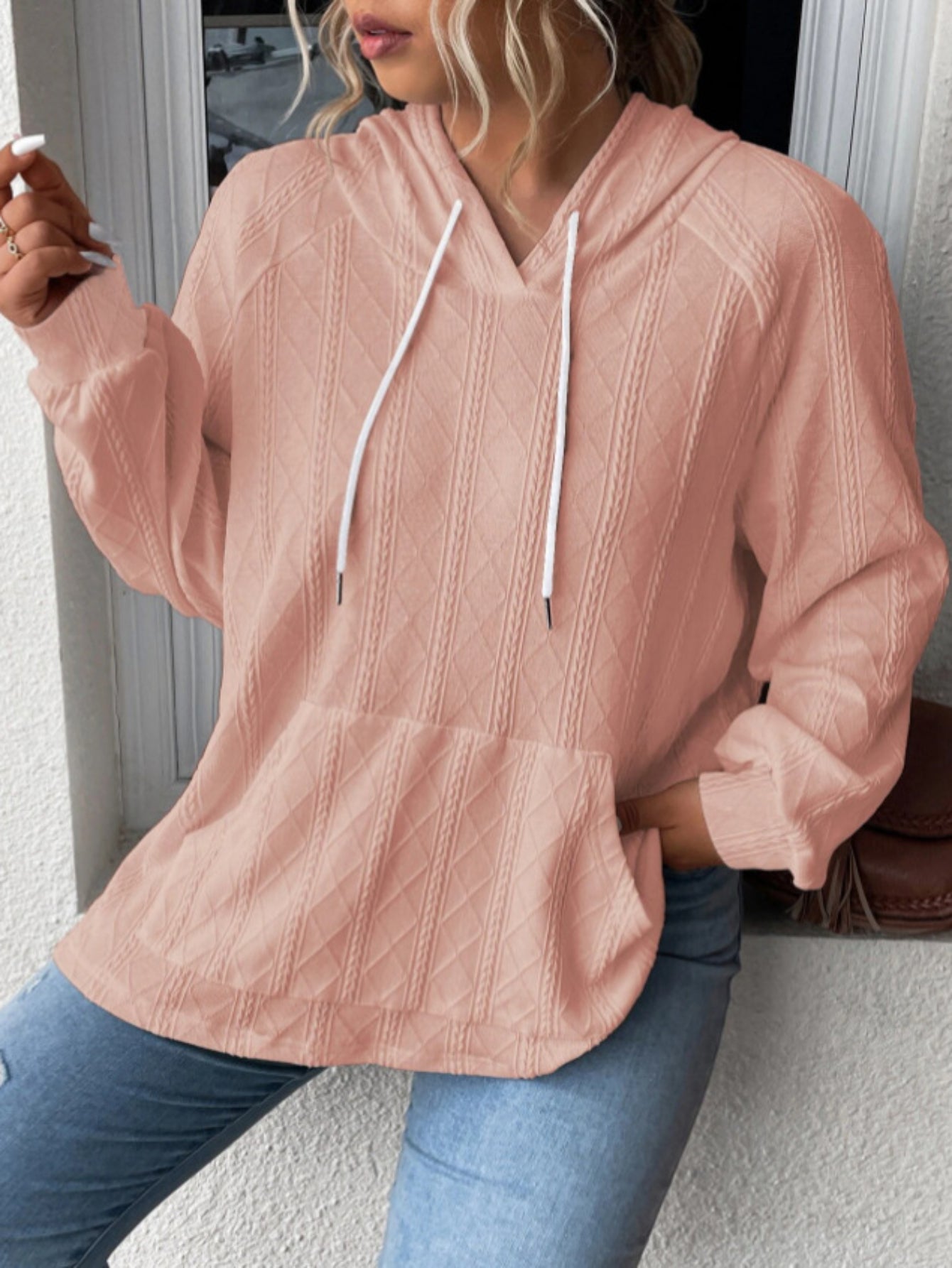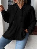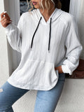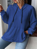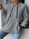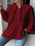 Solid Textured Long Sleeve Drawstring Hooded Pullover Sweatshirt With Kangaroo Pockets