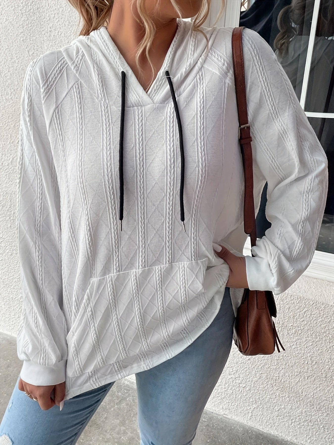 Sale Solid Textured Long Sleeve Drawstring Hooded Pullover Sweatshirt With Kangaroo Pockets