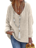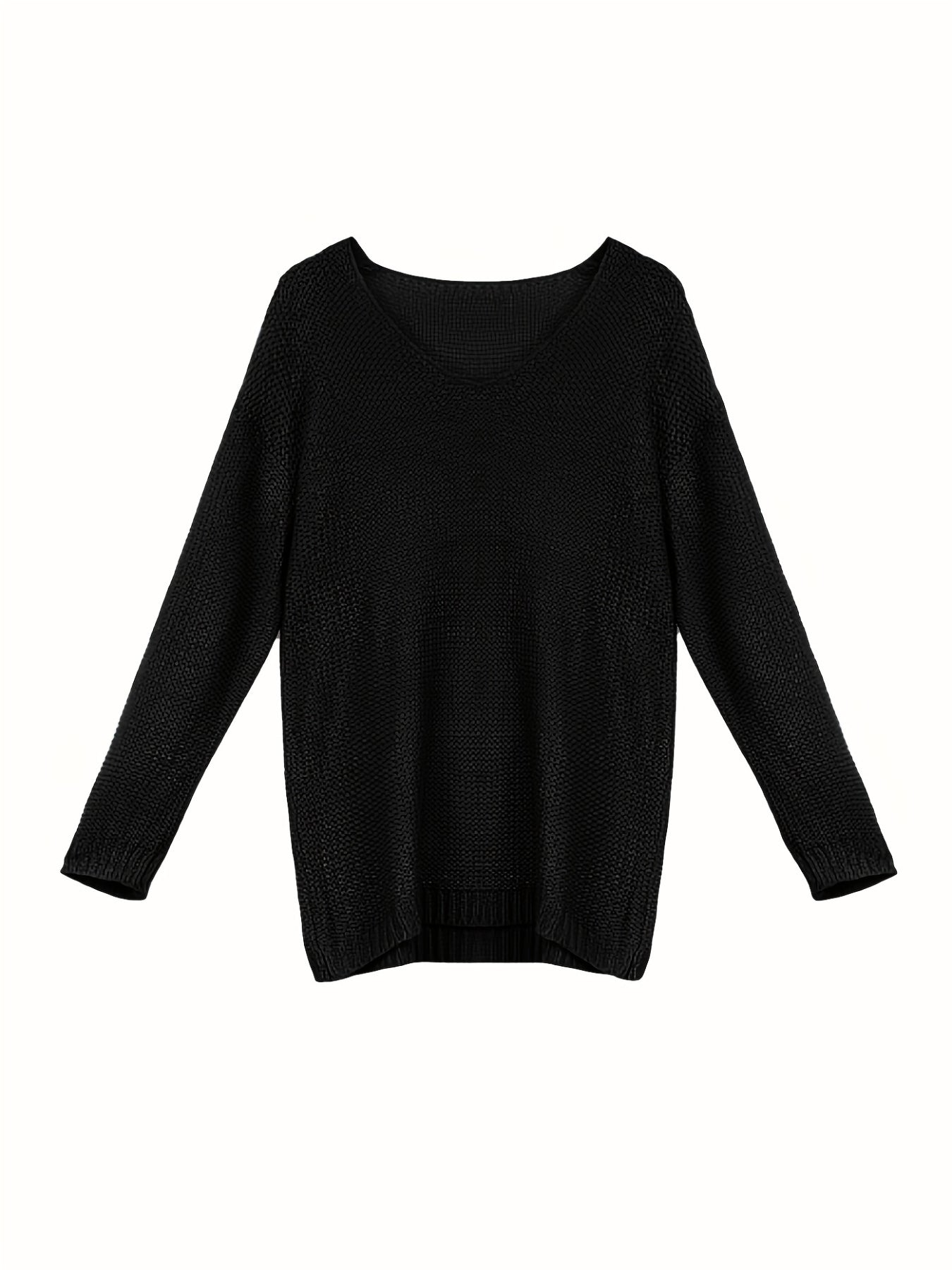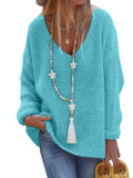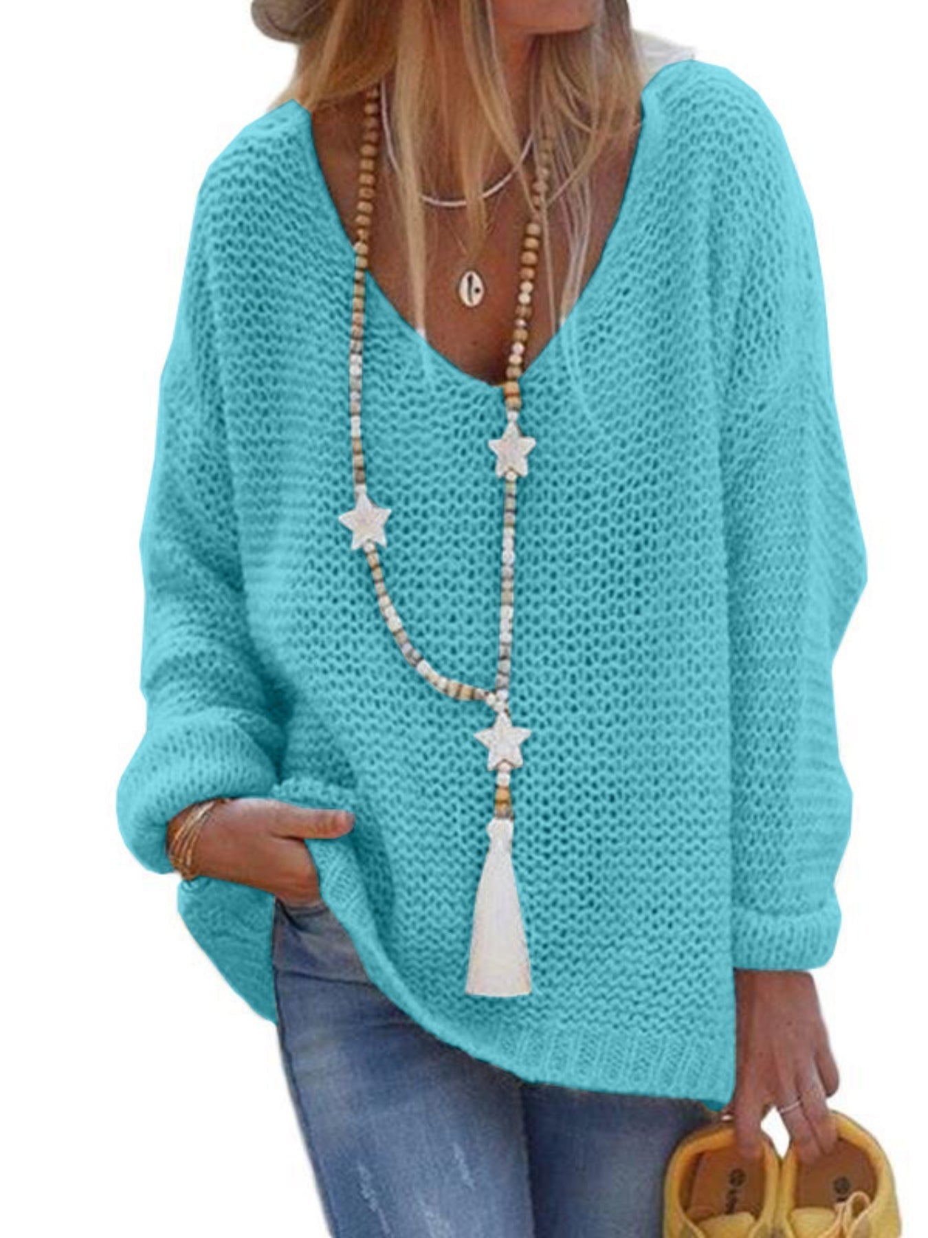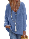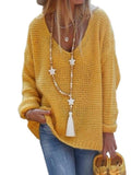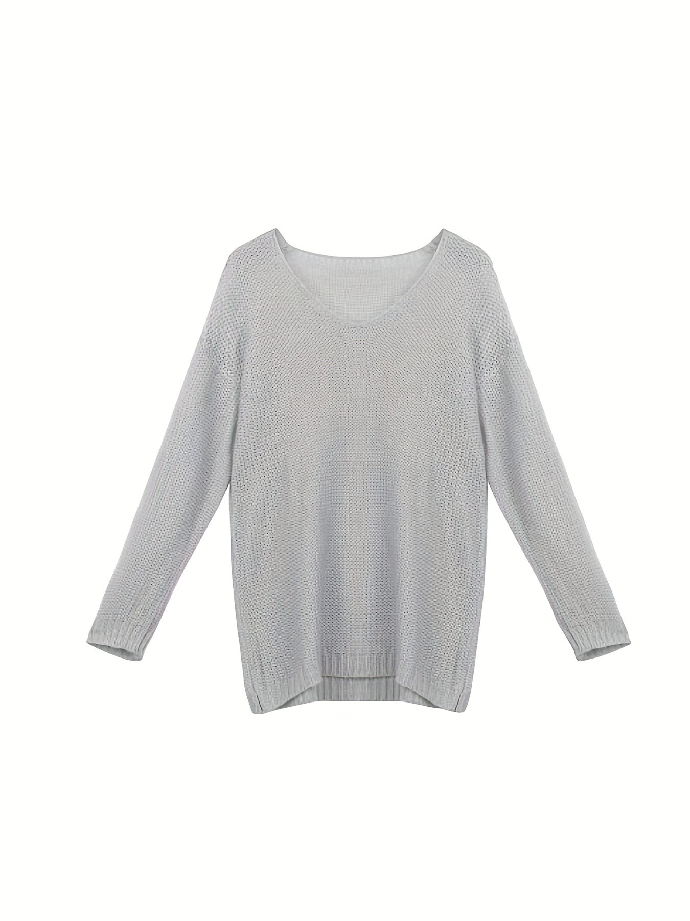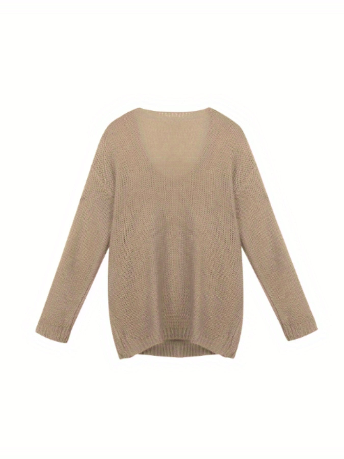 Sale Solid V Neck Knitted Pullover Sweater, Casual Long Sleeve Sweater