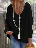 Solid V Neck Knitted Pullover Sweater, Casual Long Sleeve Sweater