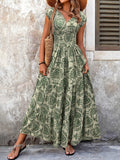 Spring Summer Printed Patchwork V-Neck Long Dress